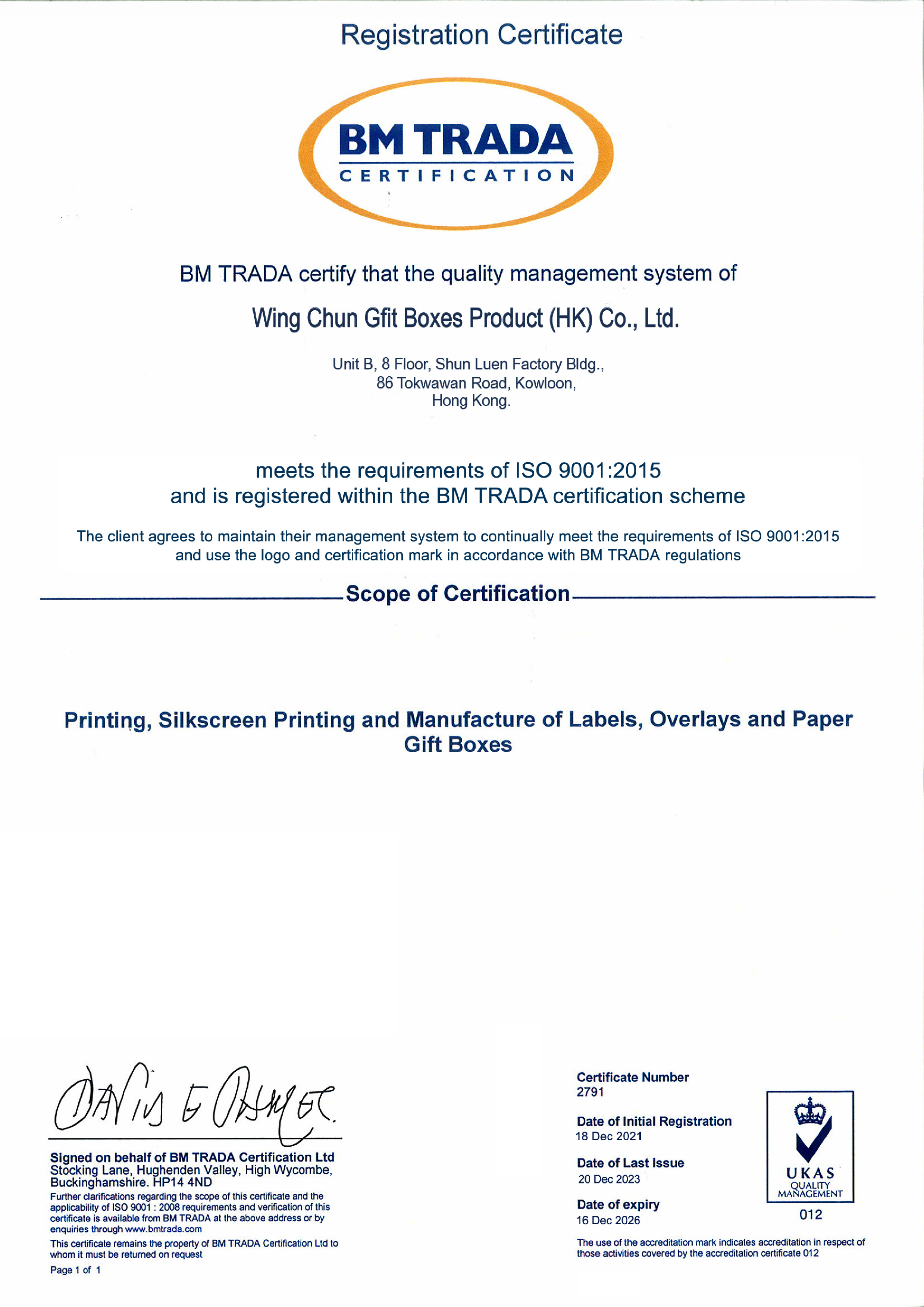 Wing Chun Gift Boxes Product (HK) Co., Limited