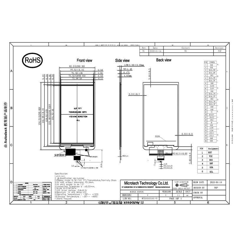 Touch LCD screen 6.0 inch 720*1280 IIC interface, support customized display