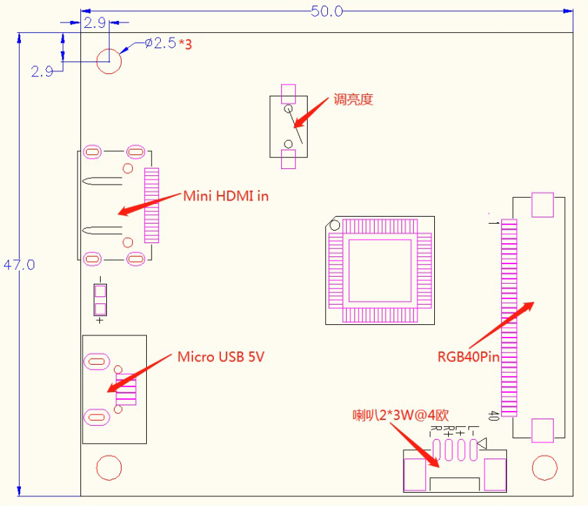 LCD Display Mini PCBA Driver Board HDMI / Micro USB Interface Adapter Board LVDS