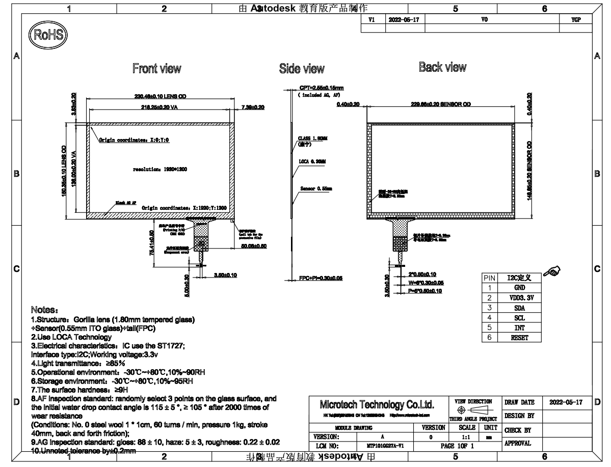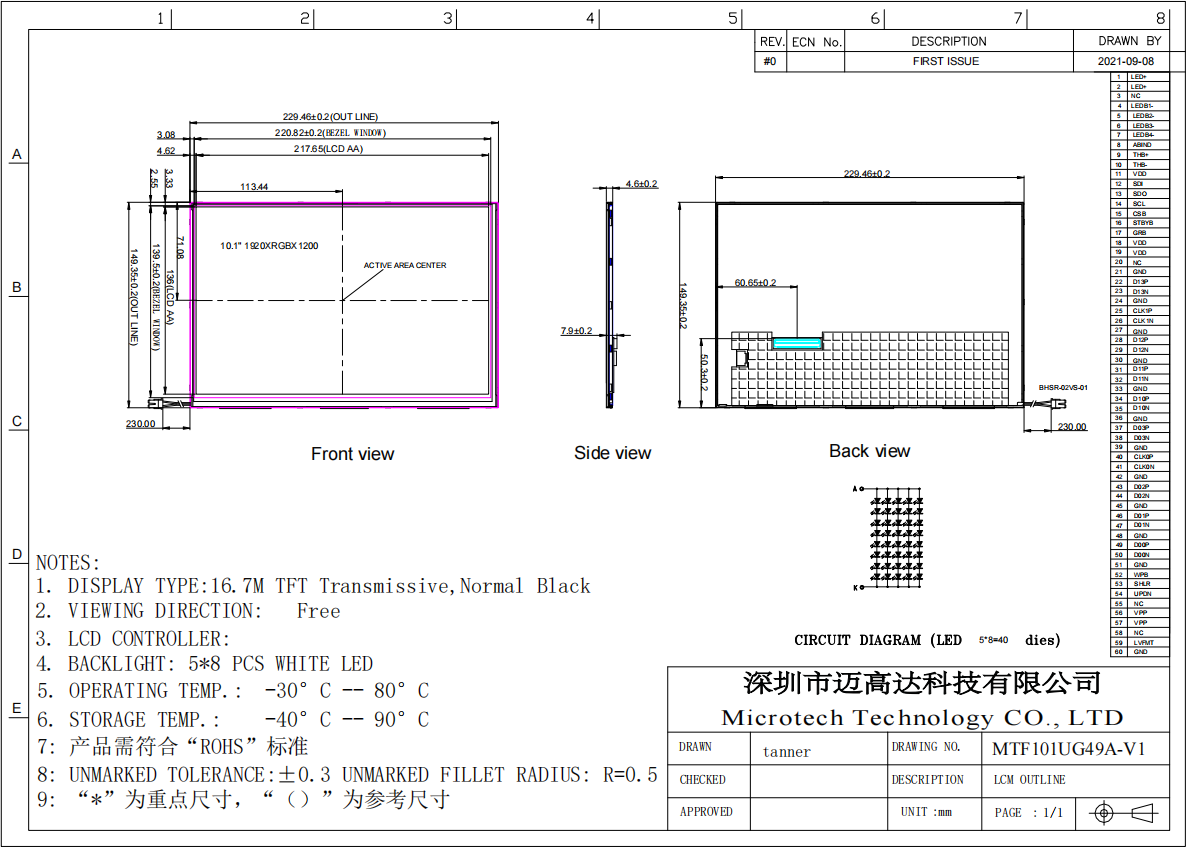 7 | Module size | 229.46(W) x149.35(H) x4.6 (D)mm | Note 1 |