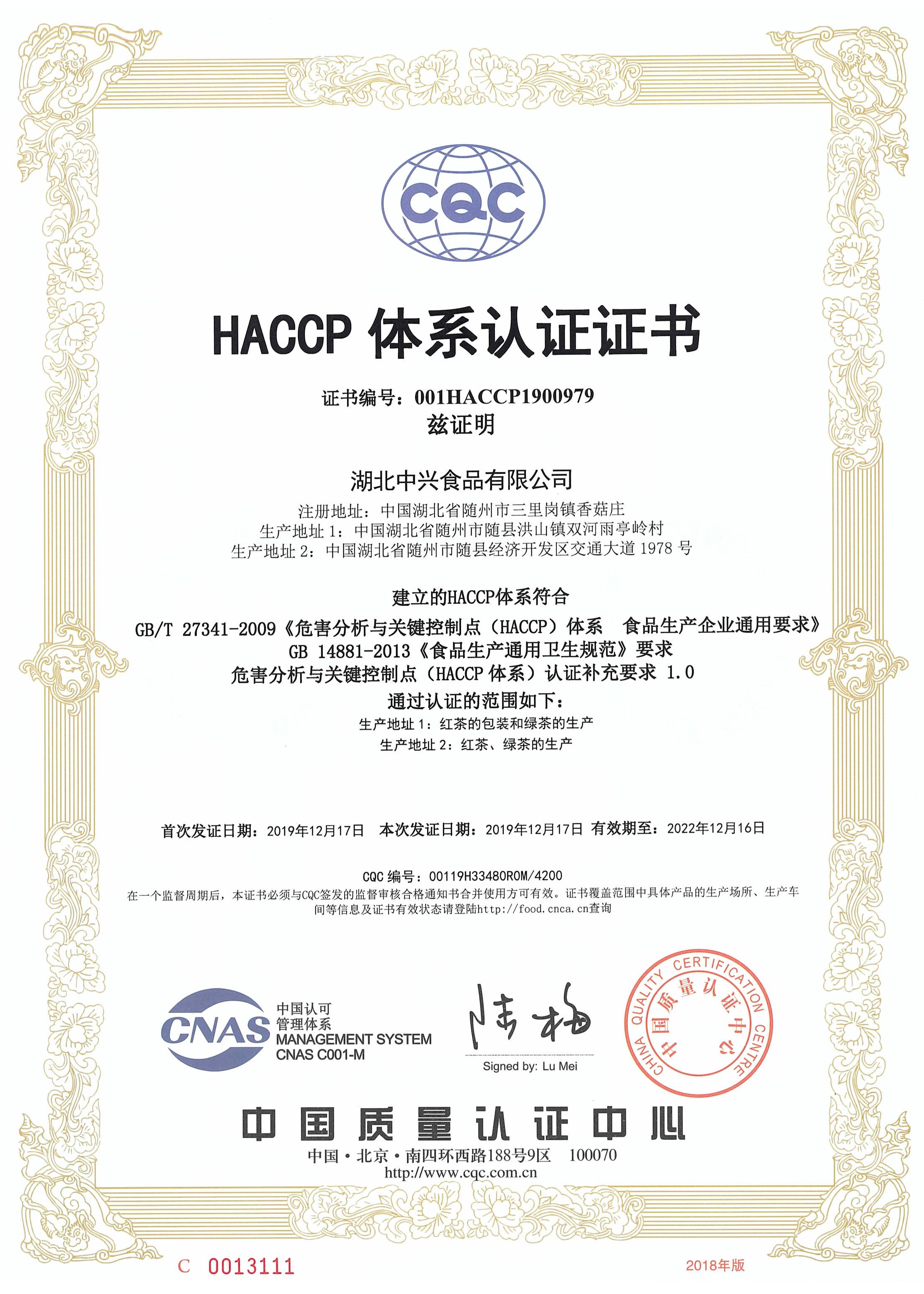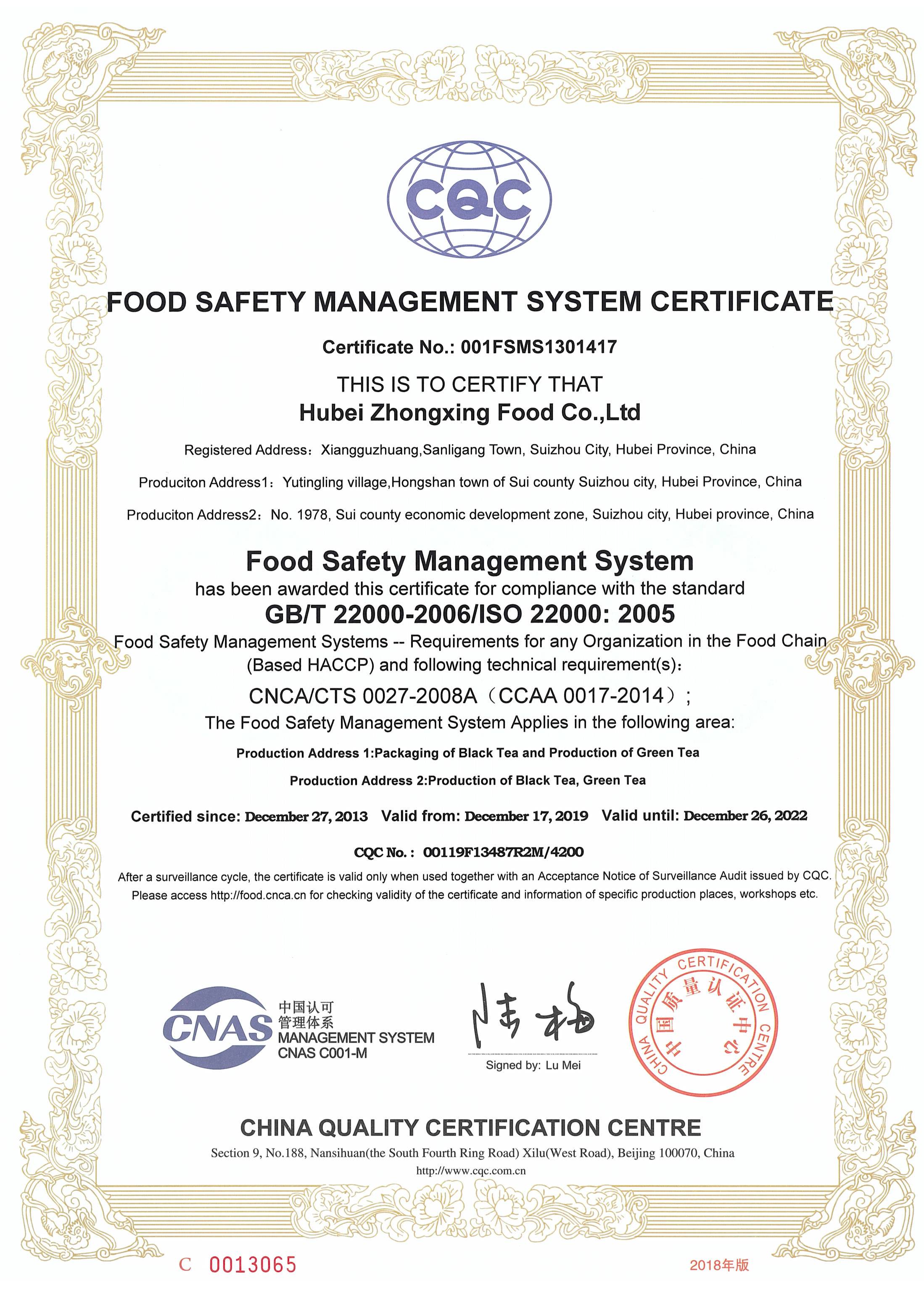FOOD SAFETY MANAGEMENT SYSYTEM CERTIFICATE