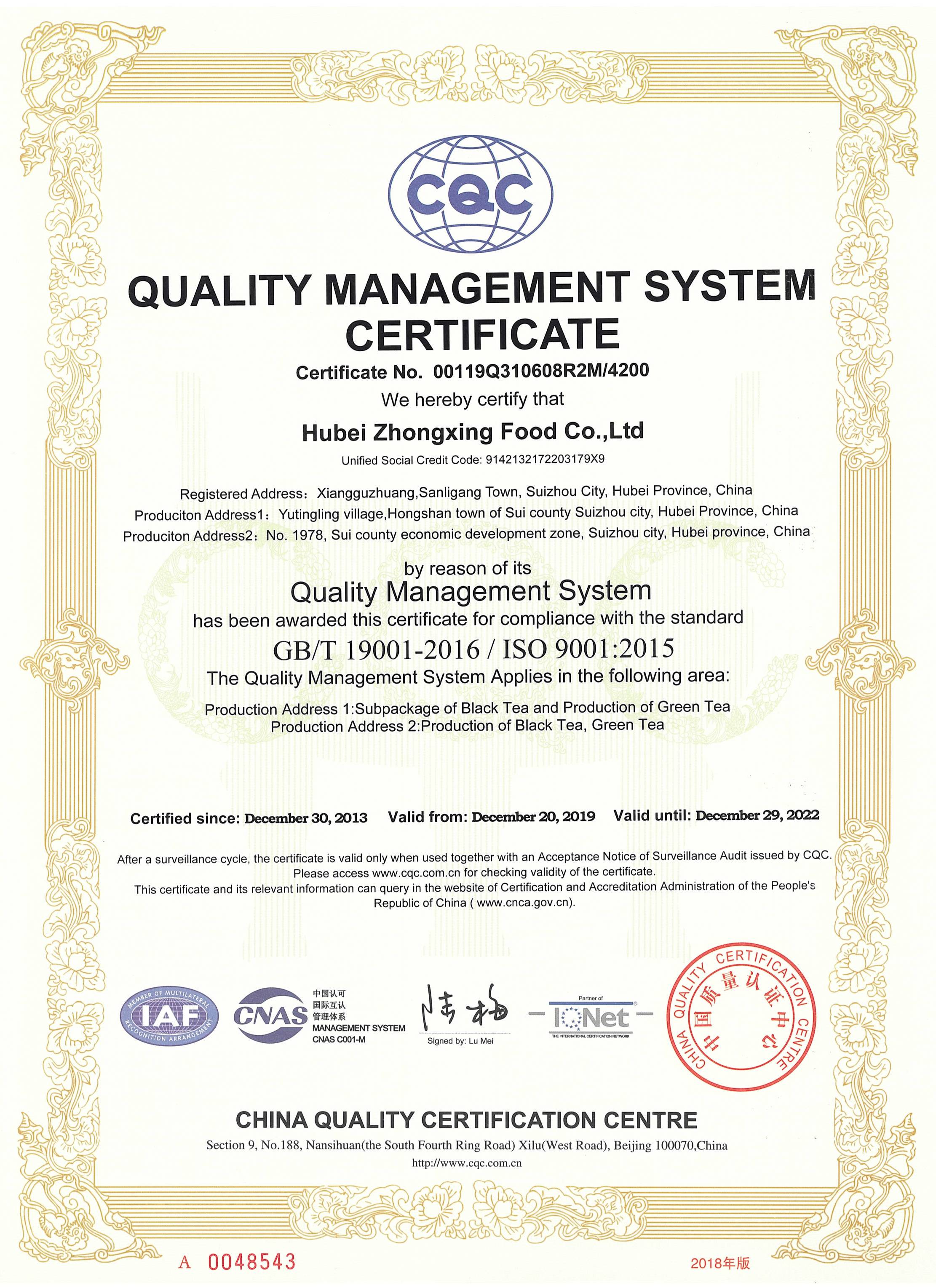 QUALITY MANAGEMENT SYSTEM CERTIFICATE