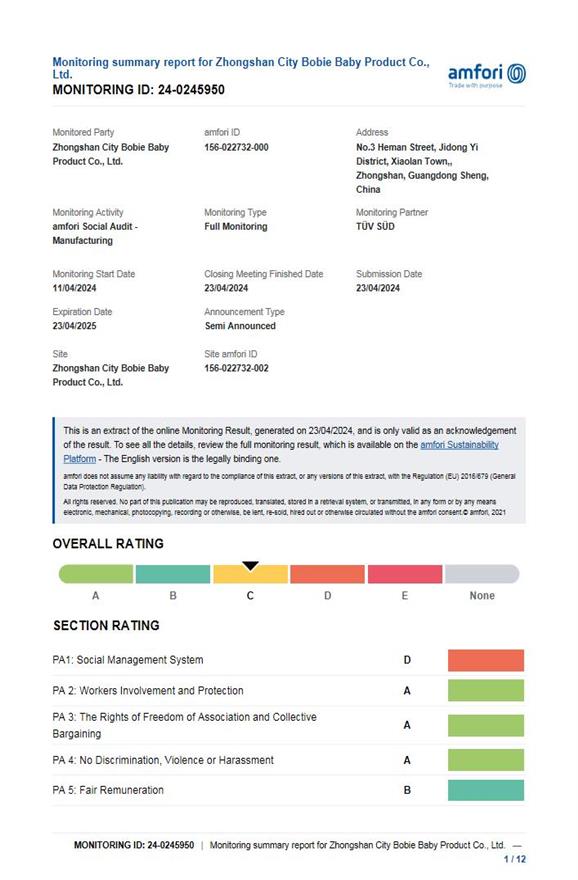 Zhongshan City Bobie Baby Product Co., Ltd.