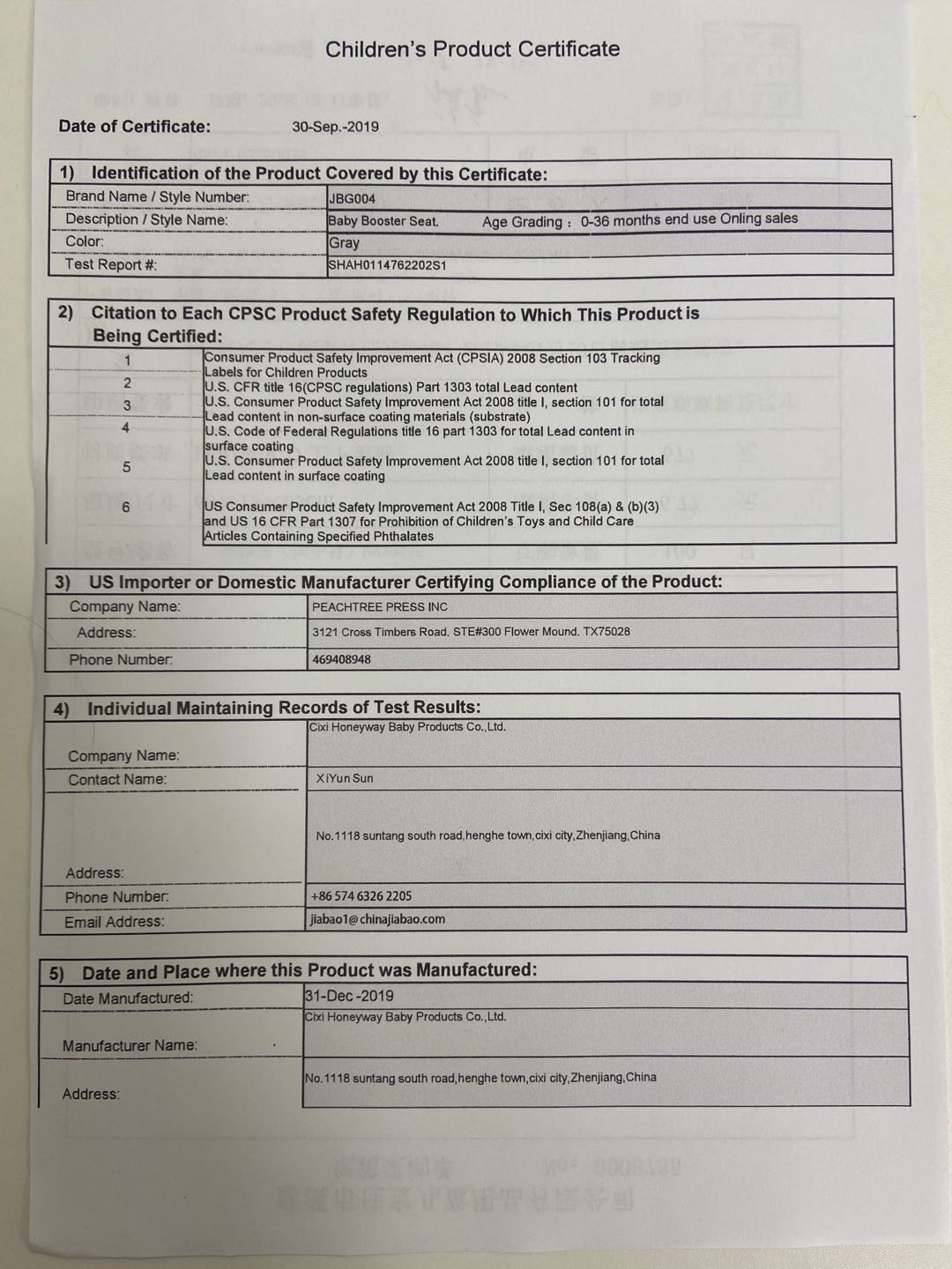 Cixi Honeyway Baby Products Co., Ltd.