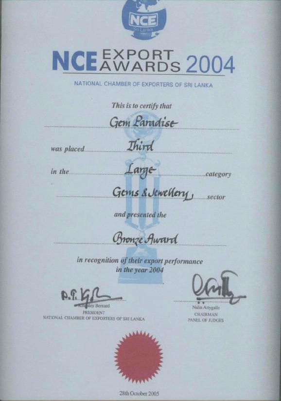 Third place - Large category - Gem & Jewellery sector (NCE Export awards 2004)