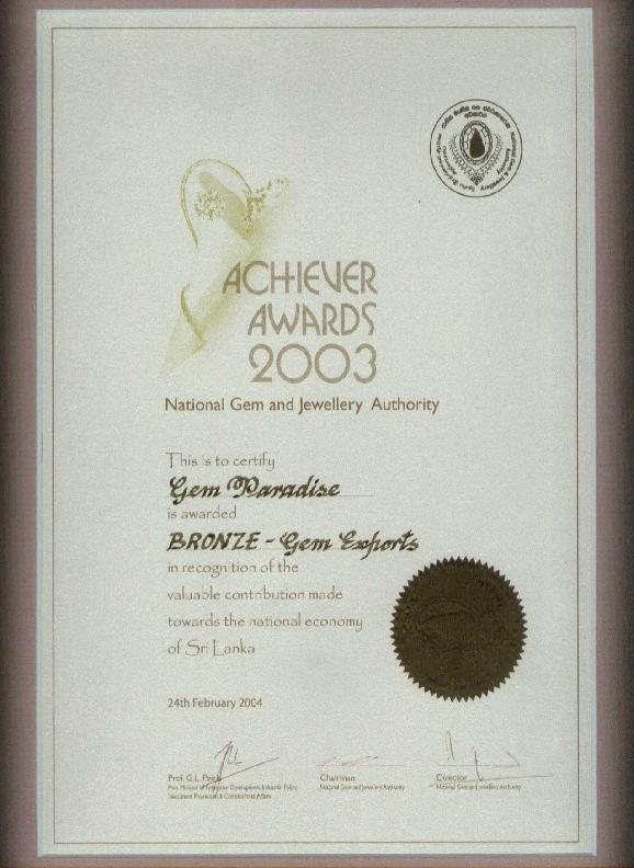 Bronze - Gem Exports (Achiever Awards 2003)