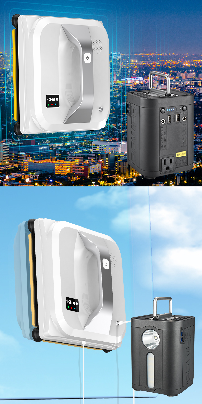 Portable window robot . It works with power station . You can cleaning the window everywhere . You don't need the plug .