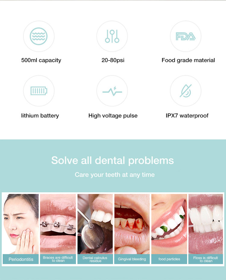Oral Irrigator provides a unique combination of water pressure and pulsations to clean deep between teeth and below the gum line, removing harmful bacteria and debris that traditional brushing and flossing can't reach. It also massages and stimulates gums for enhanced circulation.