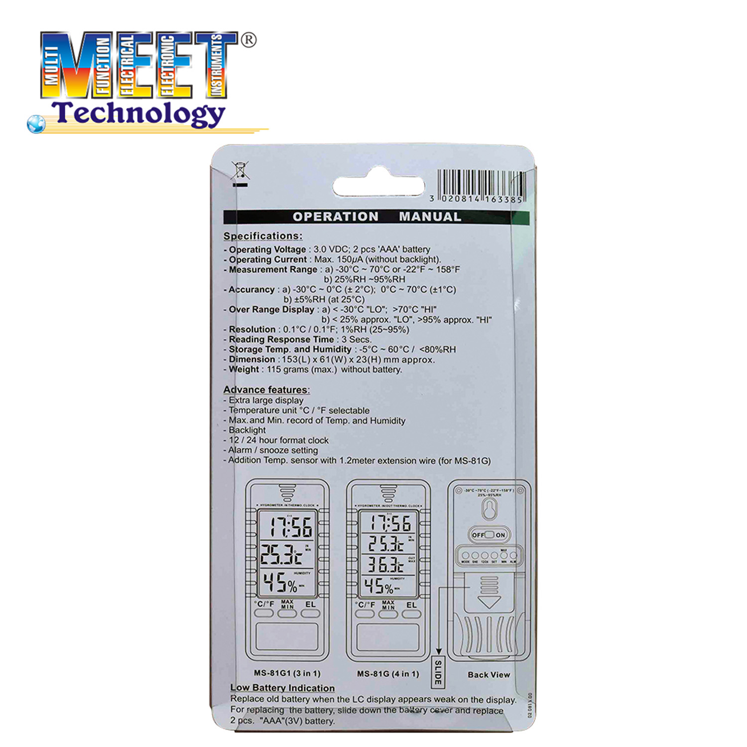 1.2 meters extension wire with sensor for outdoor temperature reading |