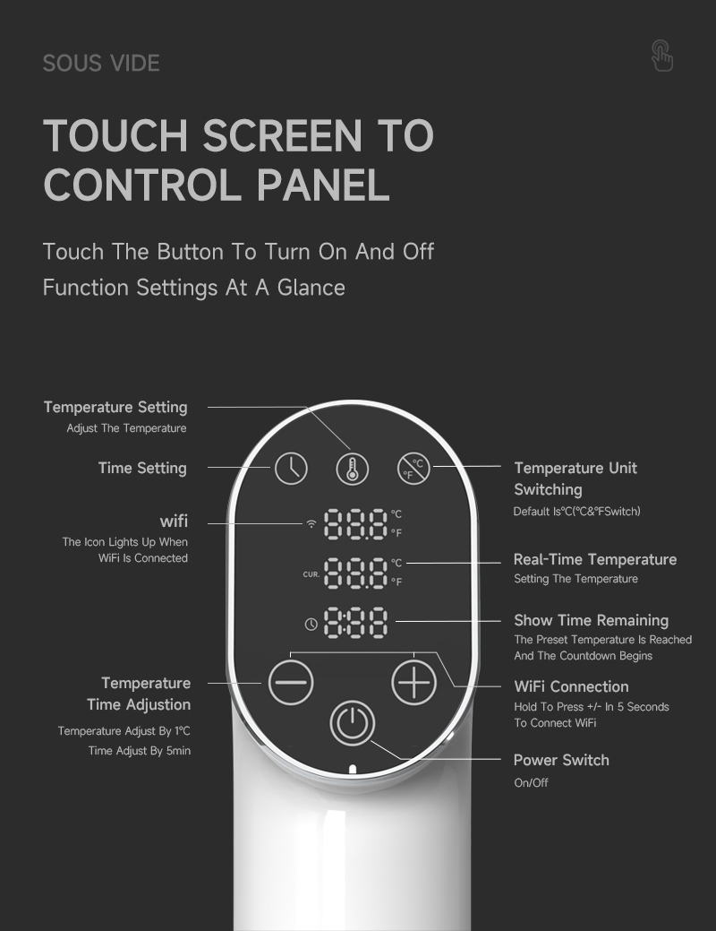 Manufacturer Sous Vide Slow Cooking Machine With Digital Touchscreen Display Mini Portable Sous Vide Stick Slow Steak Cooker