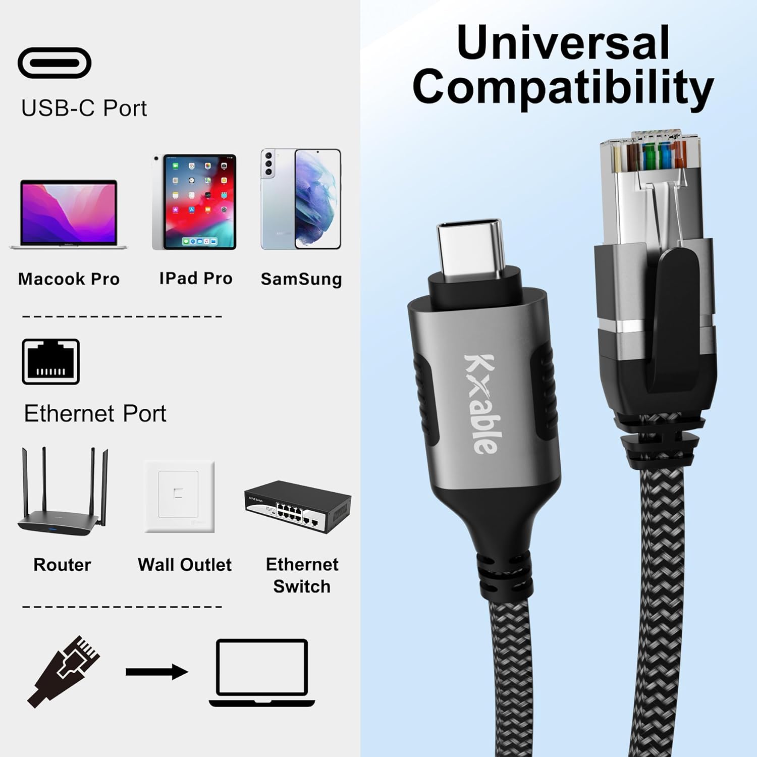 [Quality Assurance] Each USB-C to RJ45 cable has been rigorously tested before leaving the factory to ensure the stability and reliability of signal transmission. We are confident in the quality of our products, allowing you to use them worry-free.