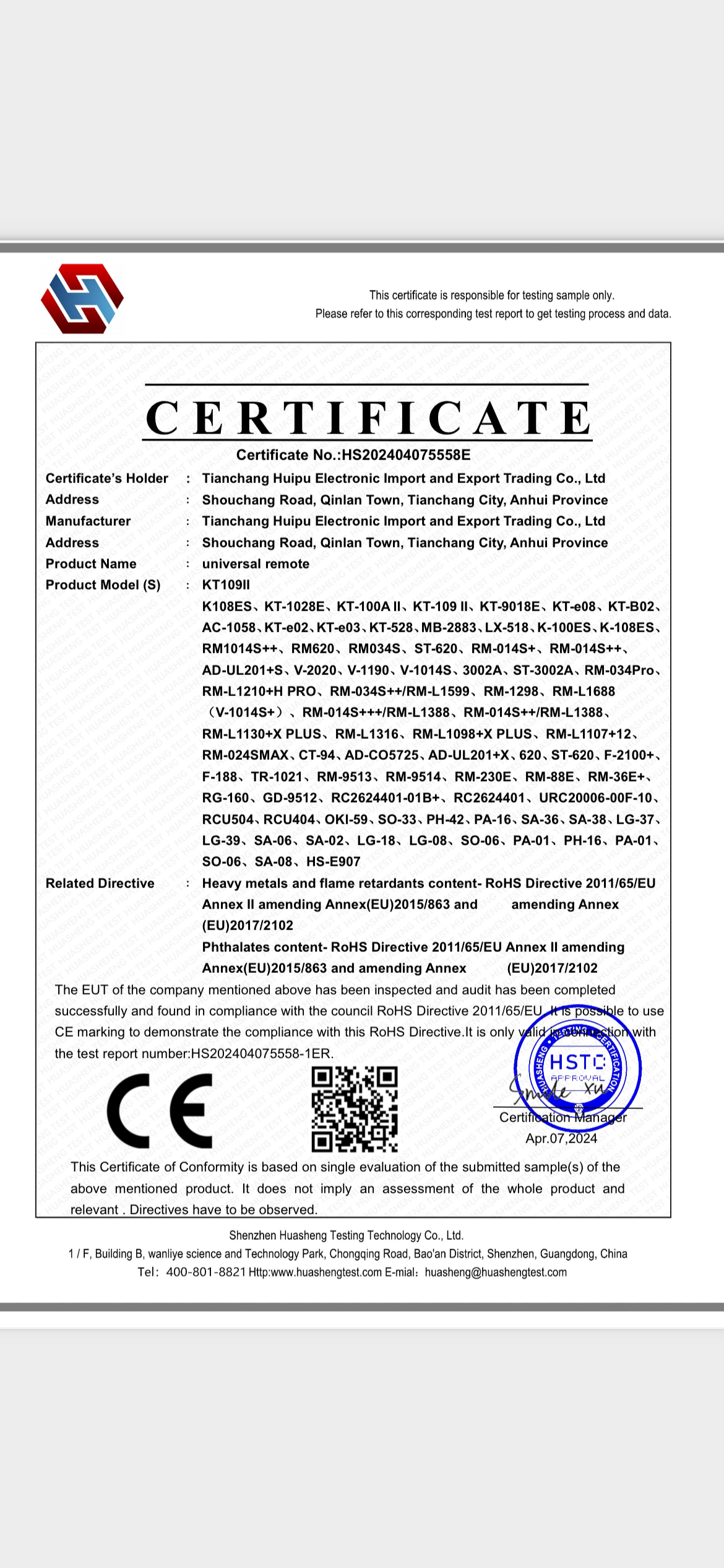 The company was established in 2006, and its main products include various ordinary remote controls, multifunctional TV and air conditioning remote controls, intelligent voice remote controls, 2.4G remote controls, Bluetooth remote controls, learning remote controls, LCD/LED TV remote controls, and other electronic products. The company focuses on research and development, and introduces new varieties and styles that are suitable for the market every year. The production of products follows national standards, and multiple products have passed ROHS, CE and other certifications.