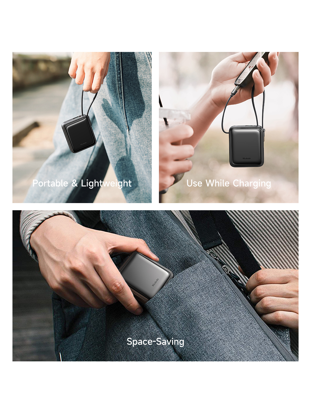 1.Built-in USB-C and Lightning cables eliminate extras, letting you charge iPhone, iPad, AirPods, and Android devices with different ports anytime, anywhere.