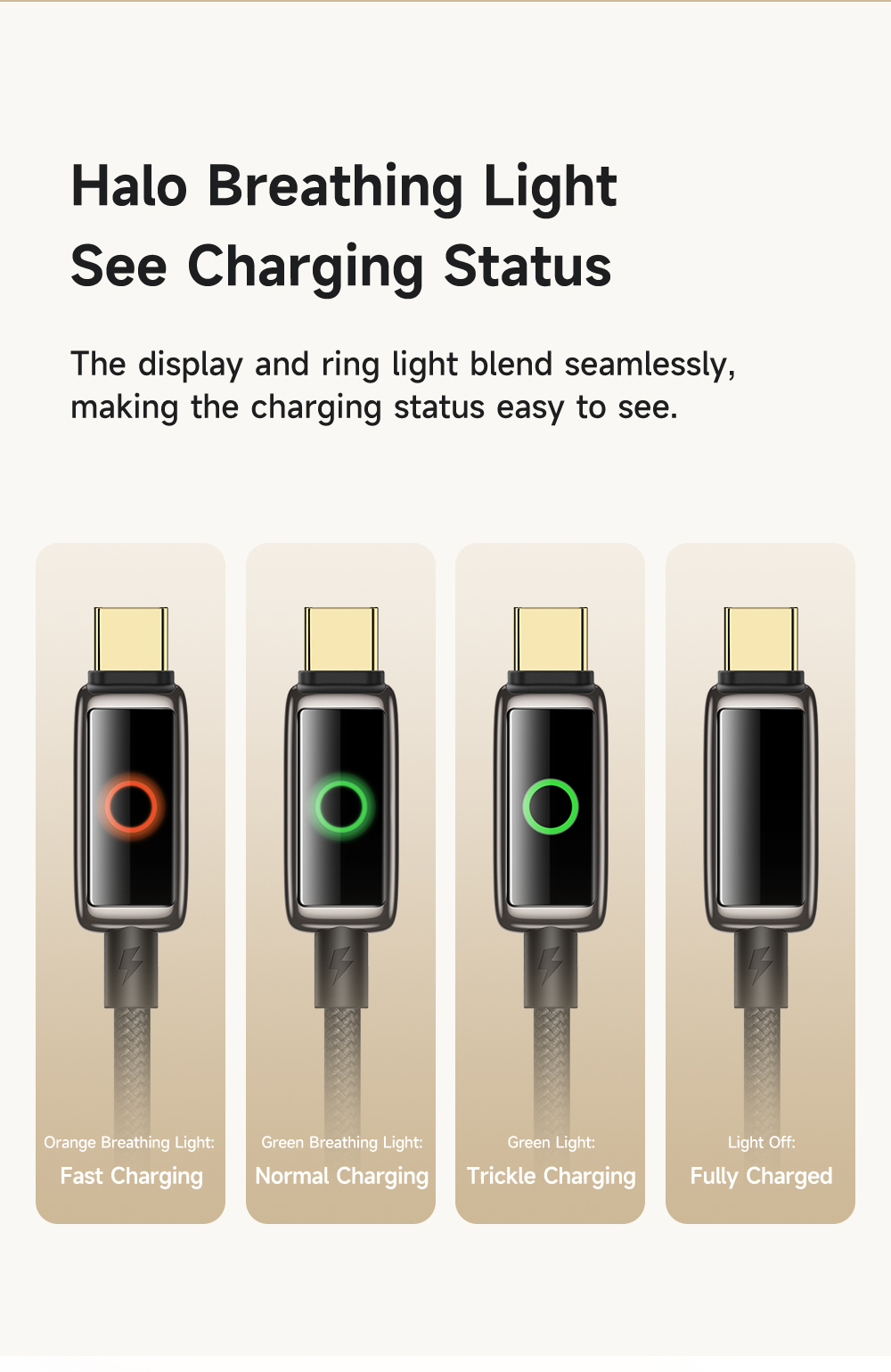 2. Once fully charged, the cable automatically powers off to stop charging and protect the device's battery