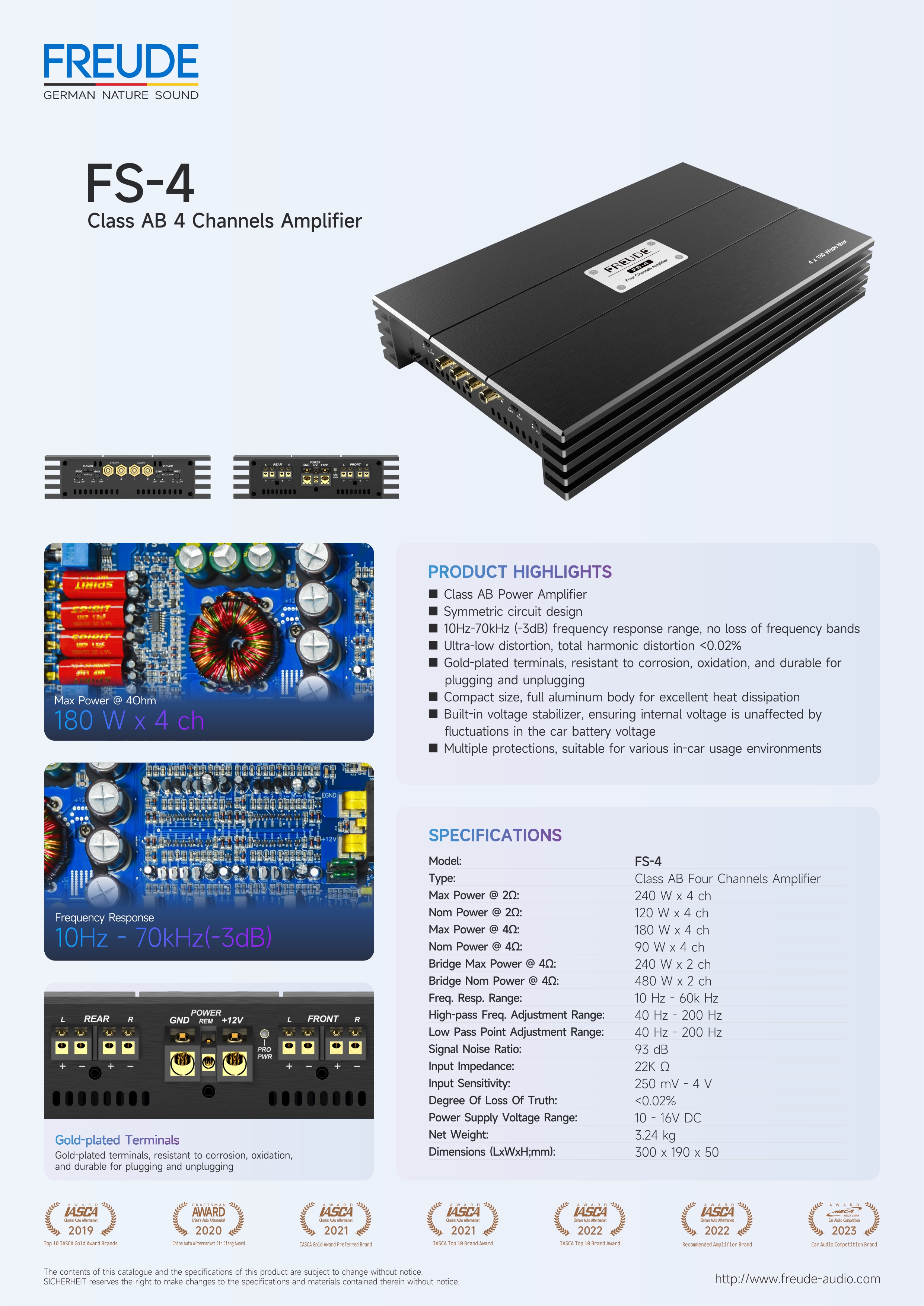 Car audio amplifier Class AB Four Channels Amplifier FS-4