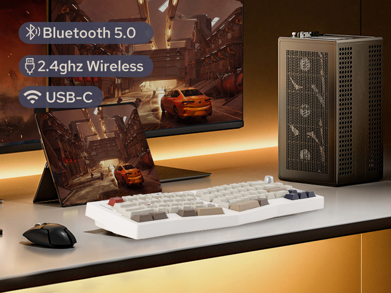 The Epomaker Alice 66 adapts effortlessly to your workflow with its triple connectivity options. Whether you need the steadfast reliability of a Type-C wired connection, the freedom of Bluetooth 5.0, or the quick setup of 2.4GHz wireless, this keyboard ensures you're always connected to your devices without fuss.