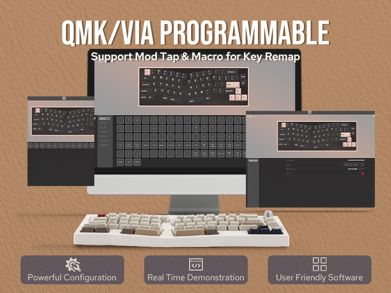 Unlock the full potential of your keyboard with robust QMK support on the Epomaker Alice 66. This powerful feature set allows for deep customization of key mappings, intricate macros, and dynamic lighting options.Note: QMK supports working in wired mode.