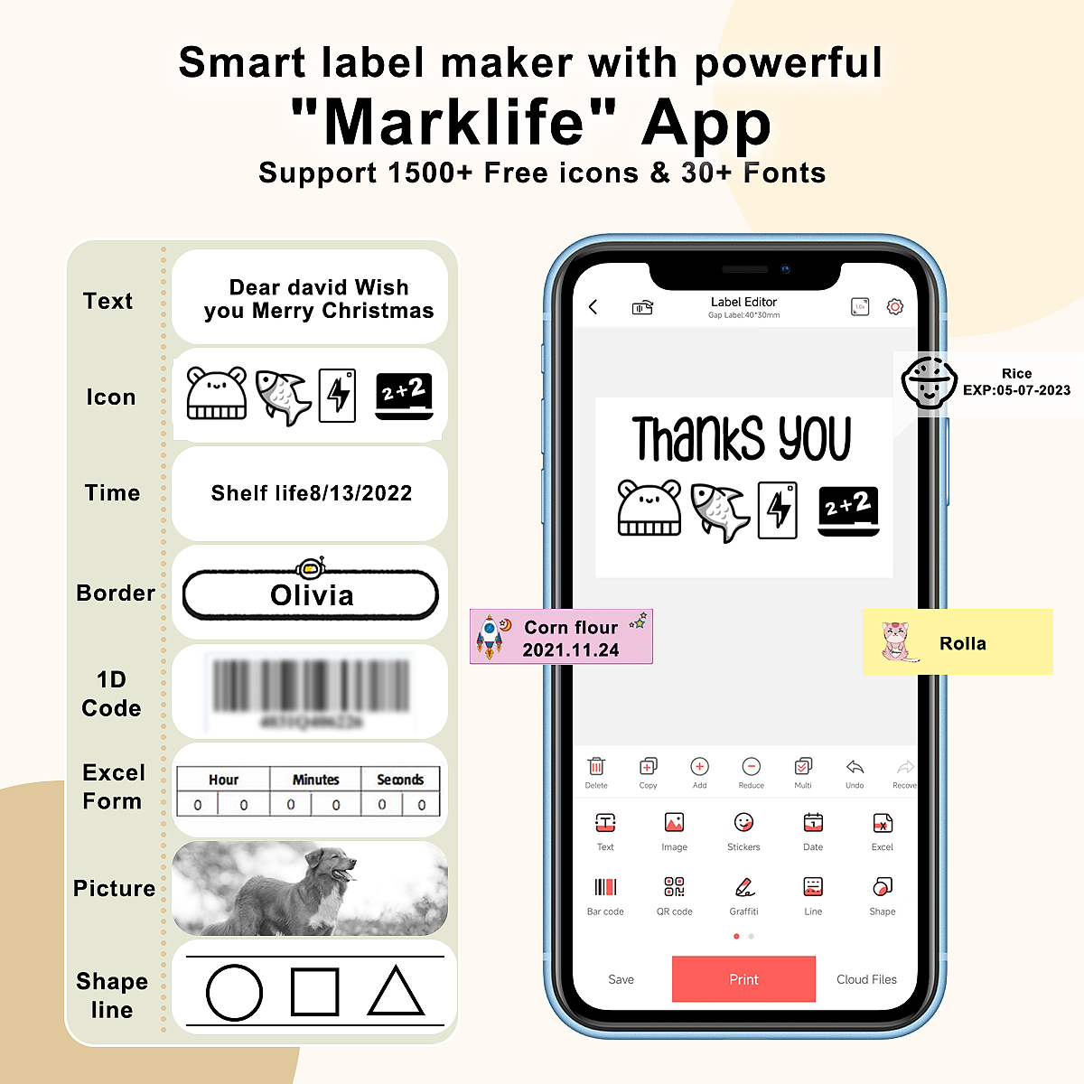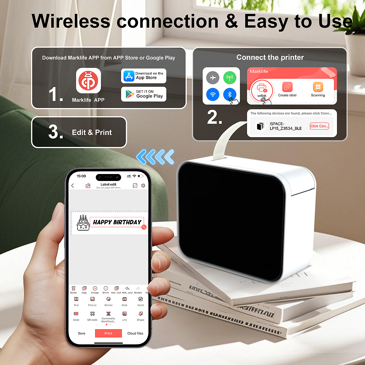 Marklife P15 White Thermal Label Printer Mini Pocket Printer Label Maker