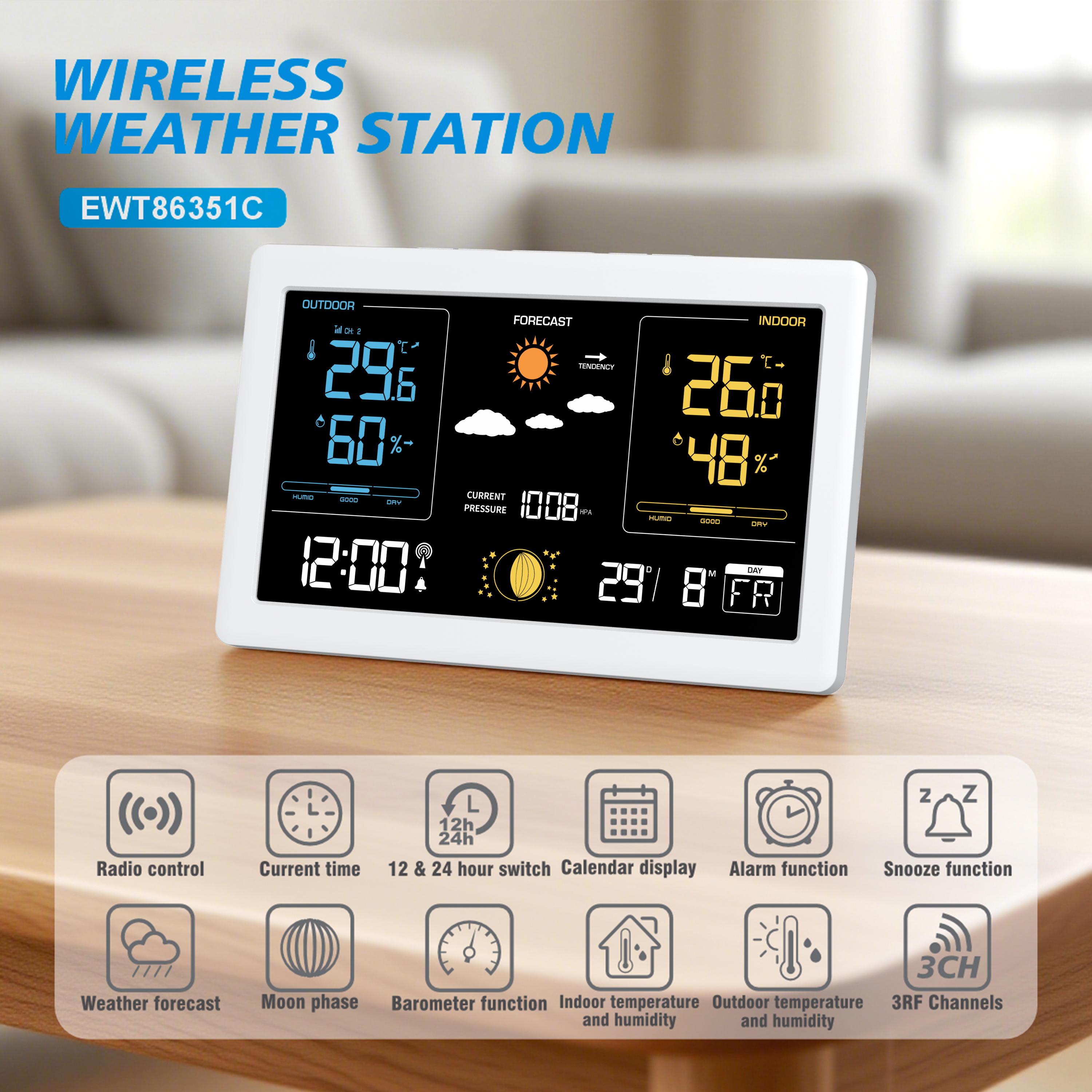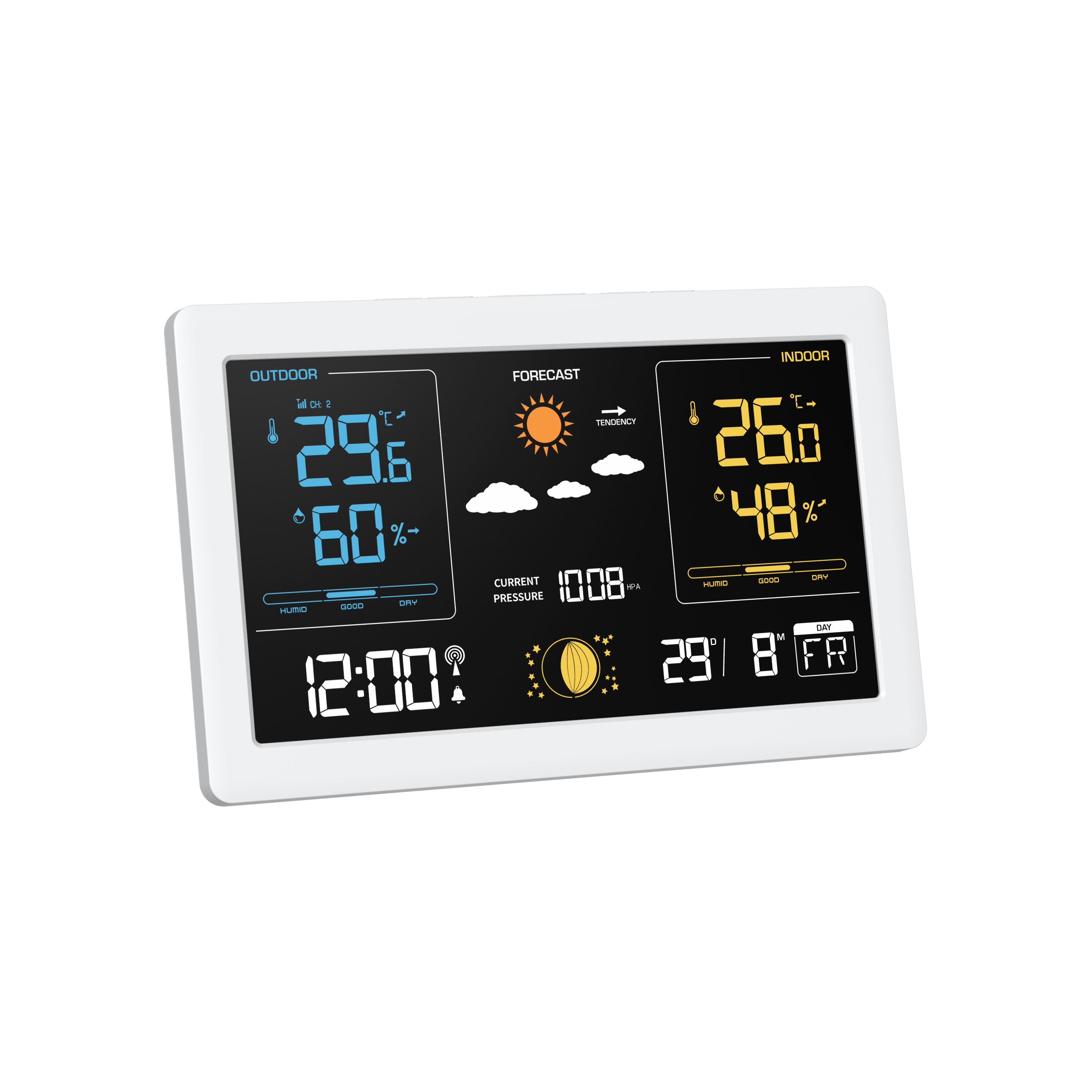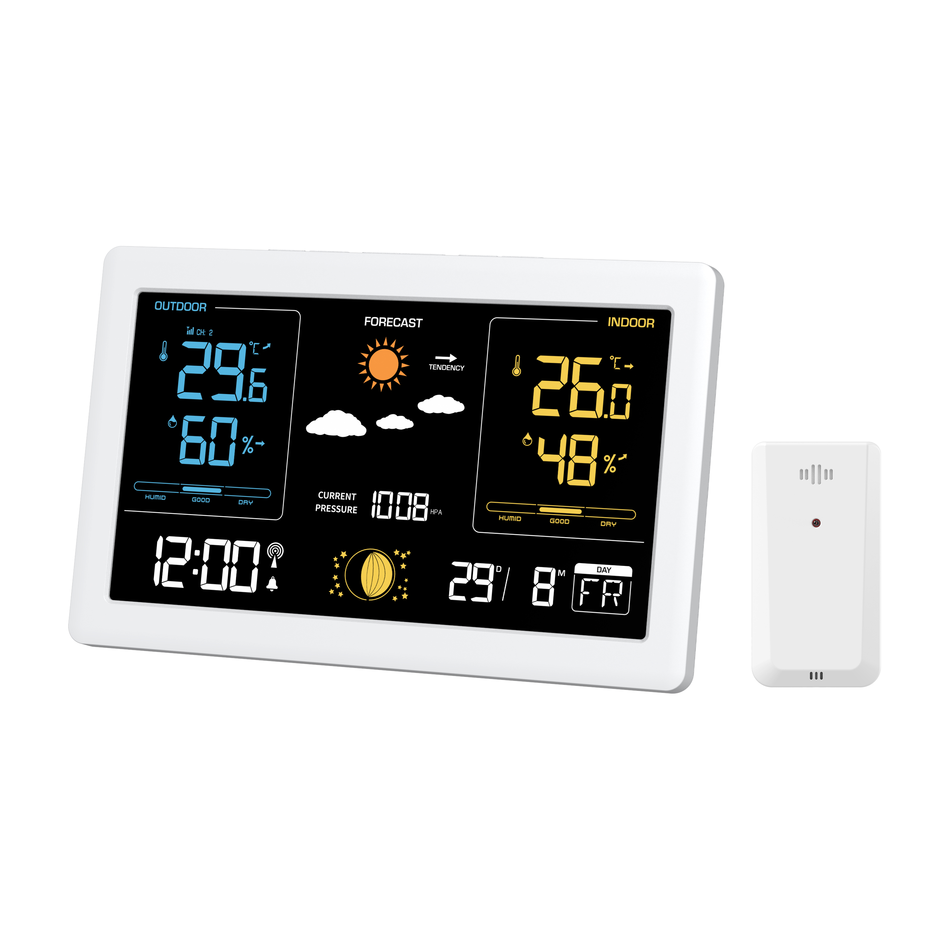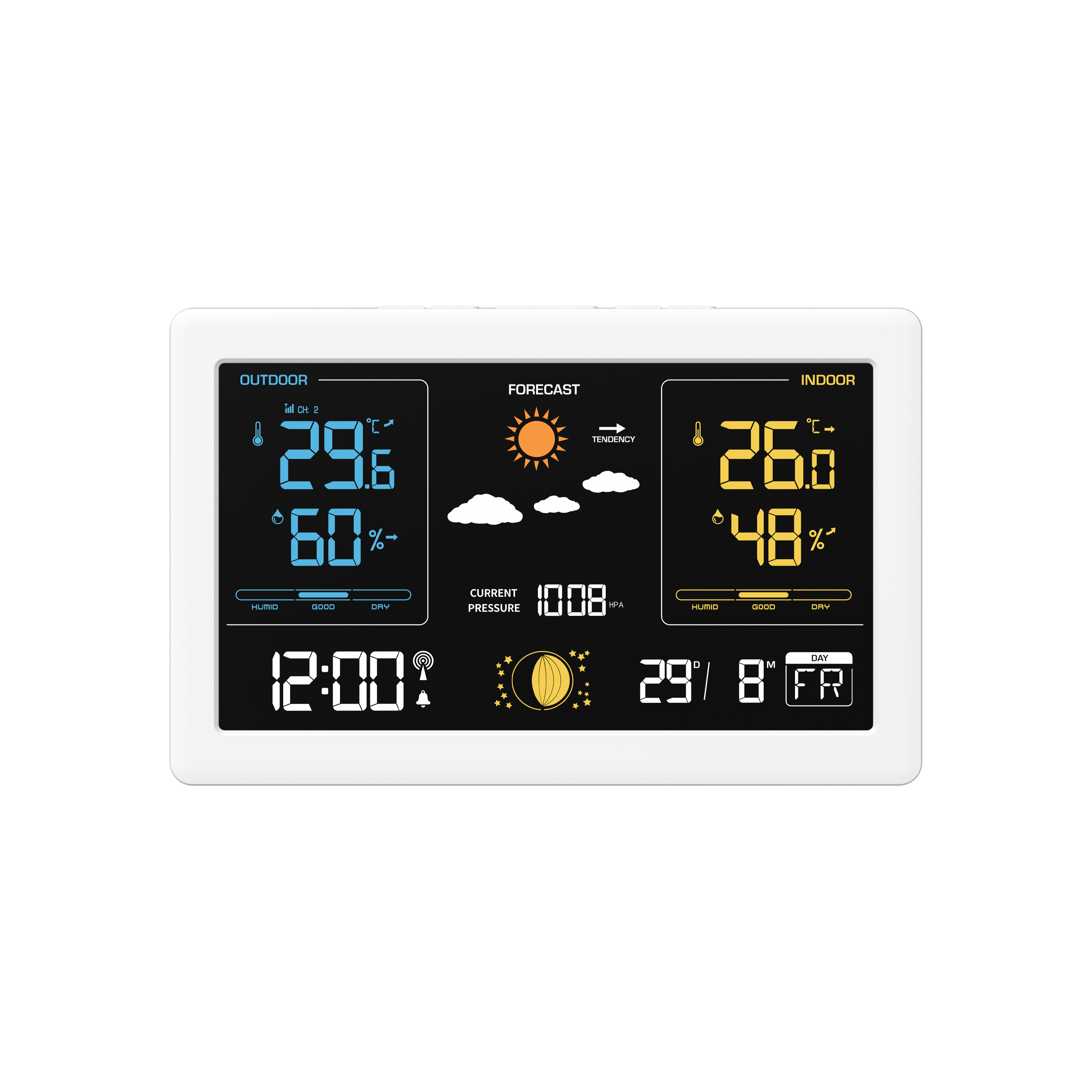 Main Function | weather forecast/time/calendar/ alarm clock/indoor and outdoor temperature and humidity | Packing Information | 1xmonitor + 1xsensor + 1xadaptor + 1xA4 size manual |