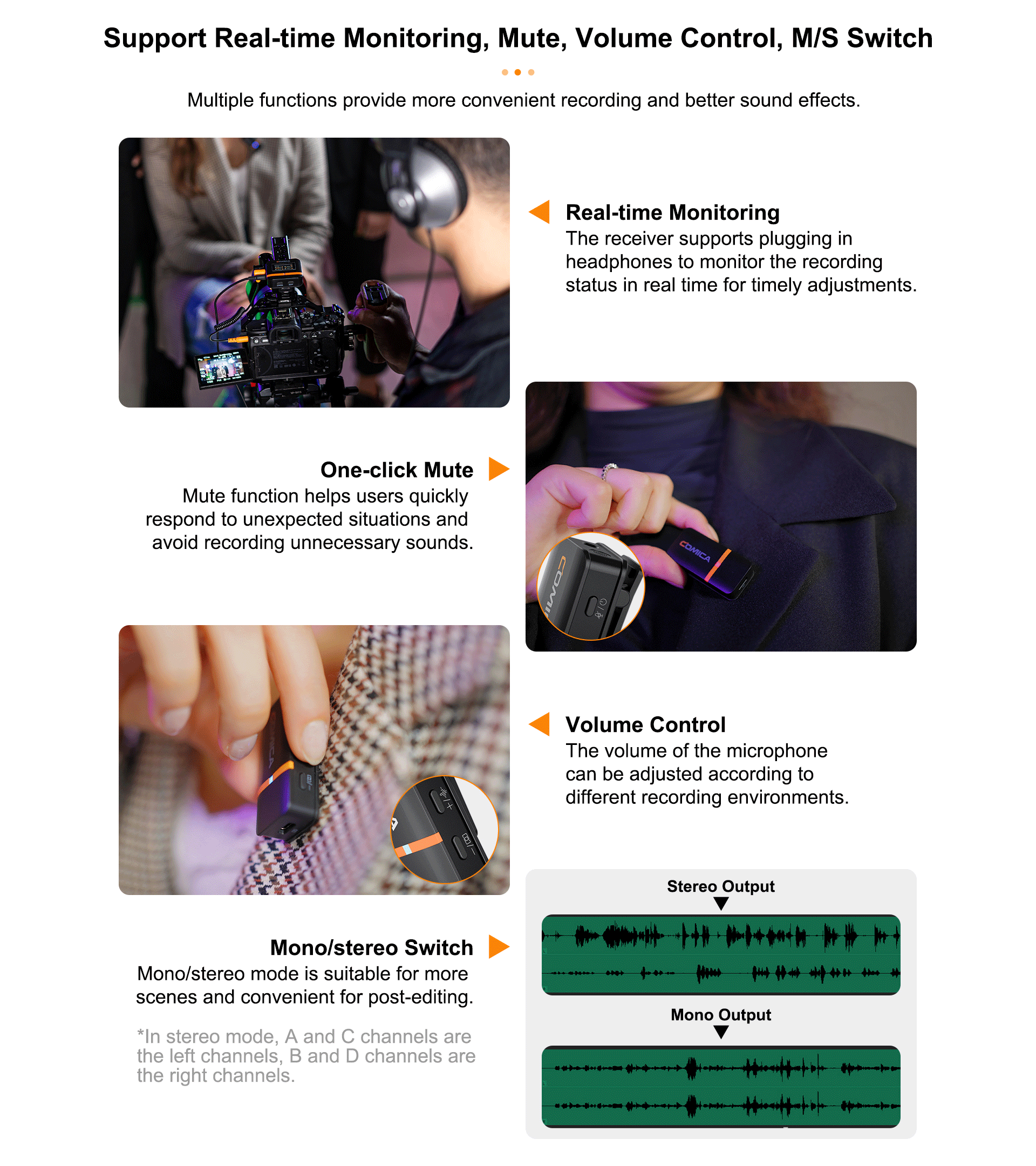6. Support Real-time Monitoring, Mute, Volume Control, M/S Switch