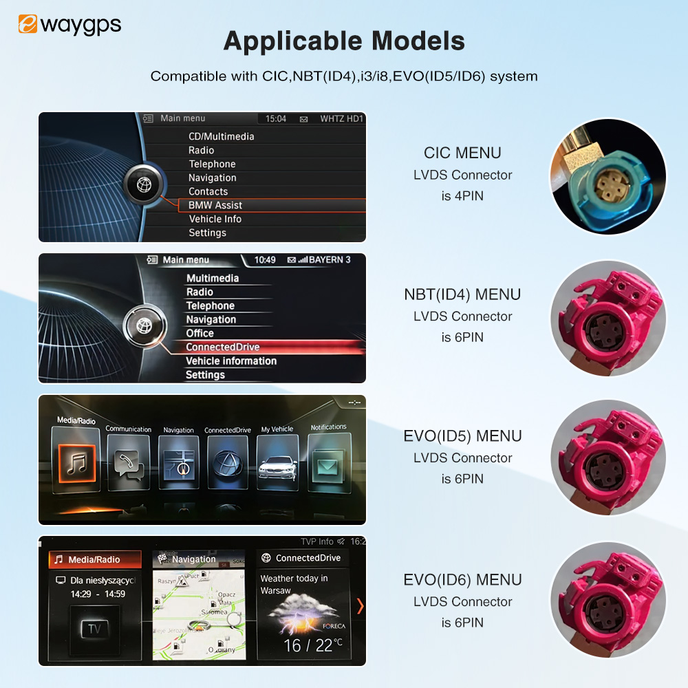 Compatible with (Mini) CIC, NBT(ID4), i3/i8, EVO(ID5/ID6) system.