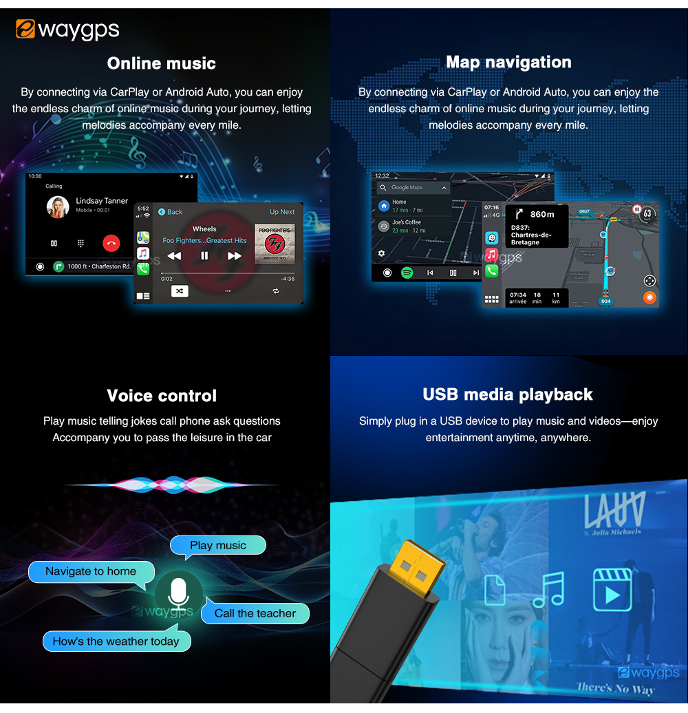 1. Work with wireless Apple CarPlay, pairing via Bluetooth, transfer via WIFI.
