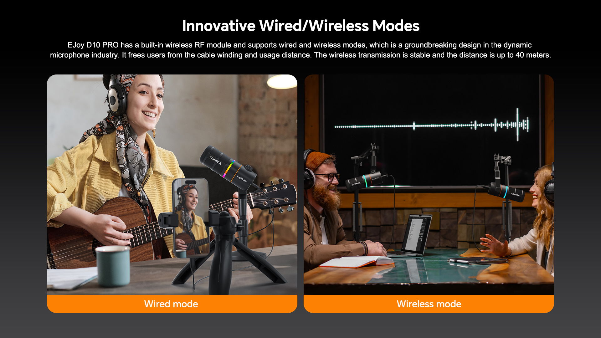 Special Feature | Wired/Wireless Modes, 48kHz/24bit Recording, 4-level Gain Control, Real-time Monitoring, Muting, Dynamic Radiant RGB Light, 3 EQ ModesWired/Wireless Modes, 48kHz/24bit Recording, 4-level Gain Control, Real-time Monitoring, Muting, Dynamic Radiant RGB Light, 3 EQ Modes |