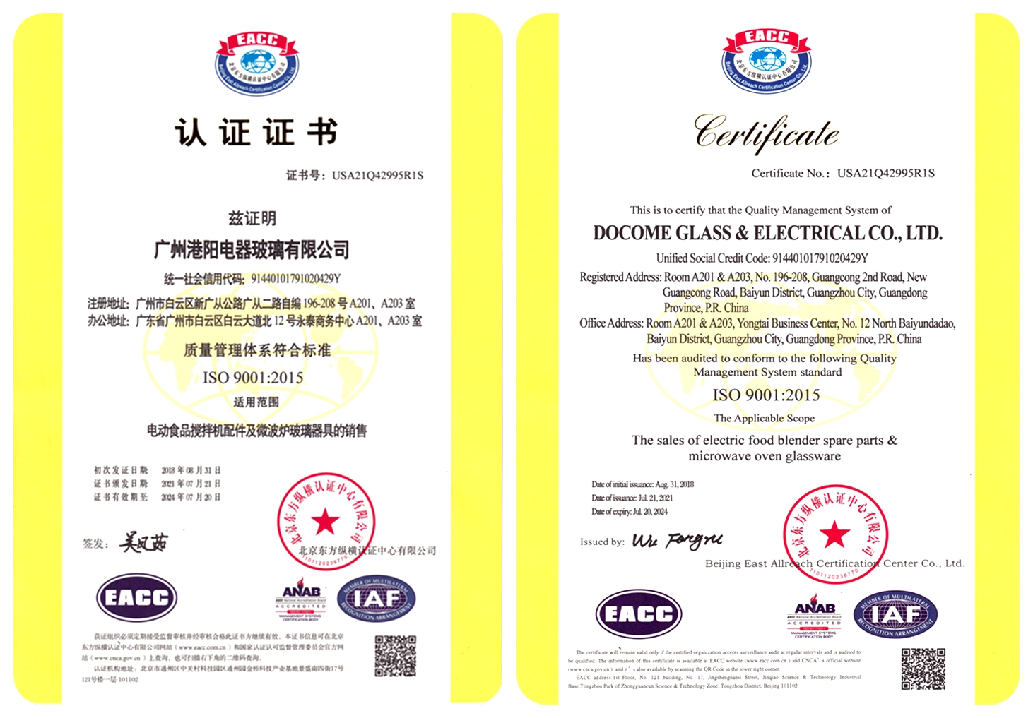 DOCOME GLASS & ELECTRICAL CO., LTD, established in 2006, is a professional manufacturer of household appliances & parts. As an ISO9001 certified company, we specialize in blender glass jar, blender part, microwave oven glass plate, and etc.
