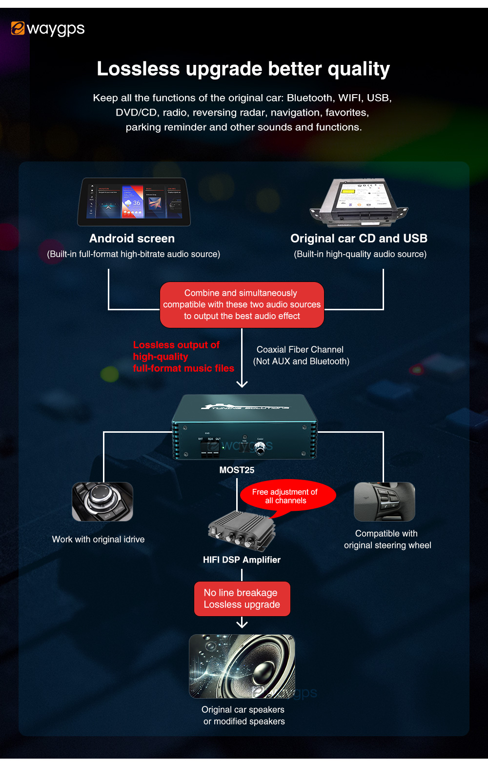 Retains compatibility with car's fiber-optic MOST bus system, maintaining the integrity of communication between components.