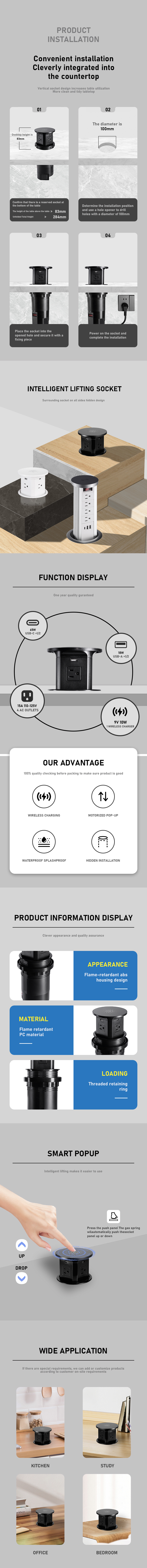 Power Strip with USB Port and Wireless Charging Overload Protection Automatic Pop up Socket