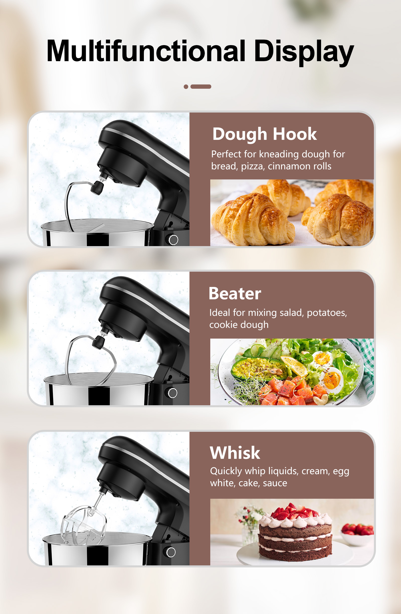 Standard Accessories | 1pc dough hook 1pc egg whisk 1pc die cast beater |