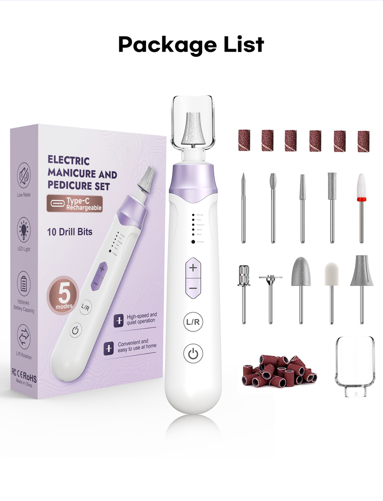 Professional Salon Nail Drill Machine Portable 10000rpm Electric Pedicure and Manicure Device with 5 Working Modes