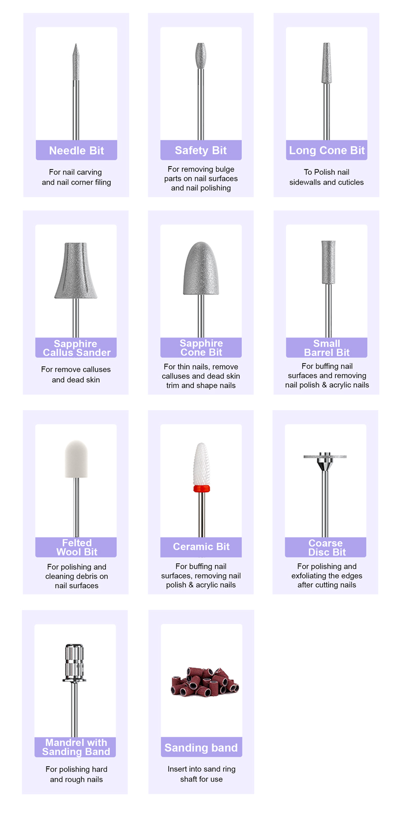 Cordless Portable Acrylic Gel Nail Polish Remover Machine Pedicure Manicure Tool, 10 Bits 21 Sanding Bands Salon Home