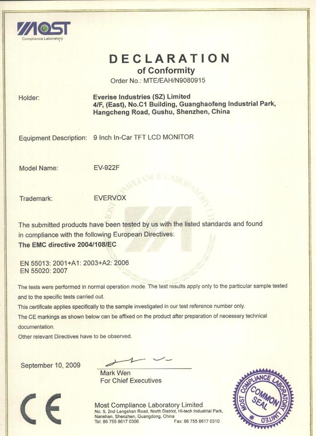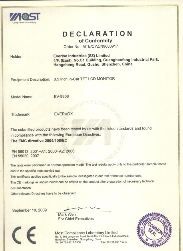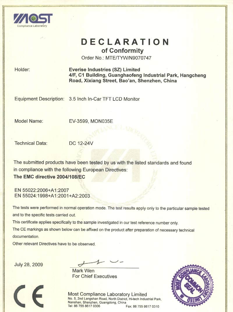 CE approval for 7" monitor