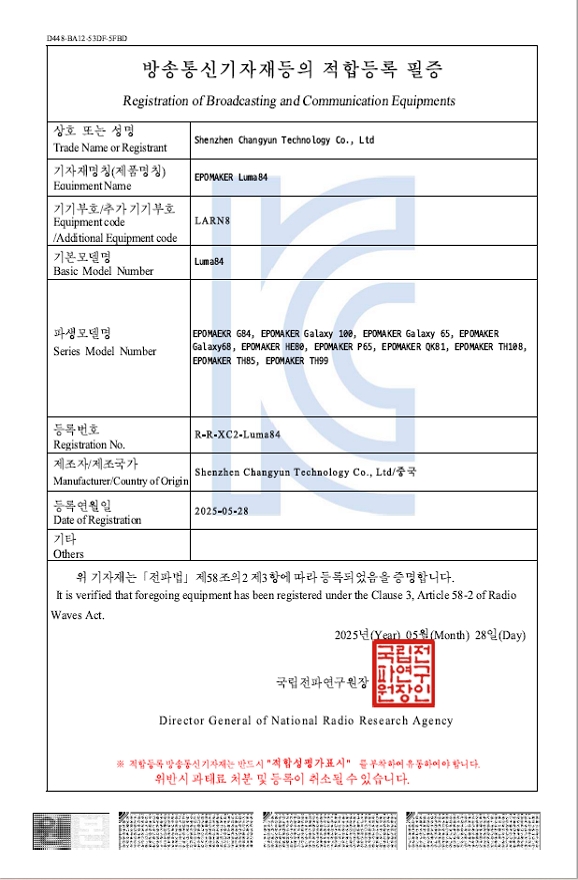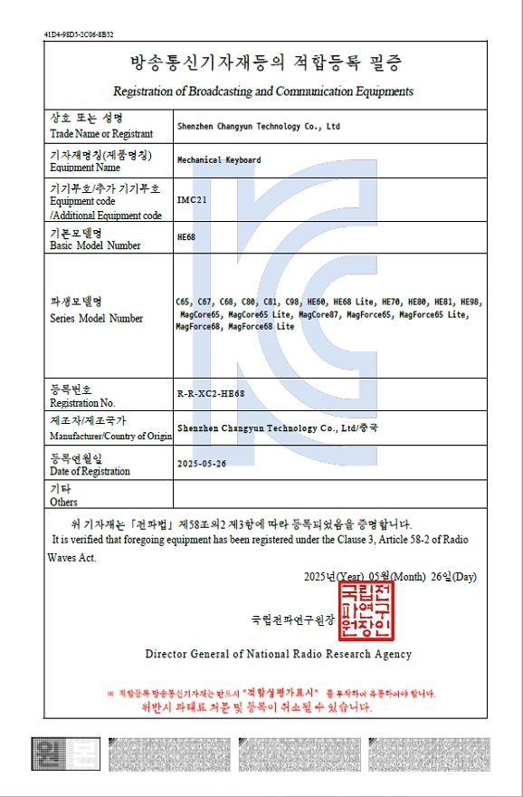 发行机构Director General of National Radio Research Agency有效日期(不適用)