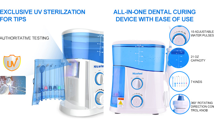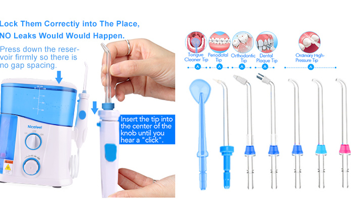 The 360-degree rotating nozzle can ensure cleaning to all oral areas.