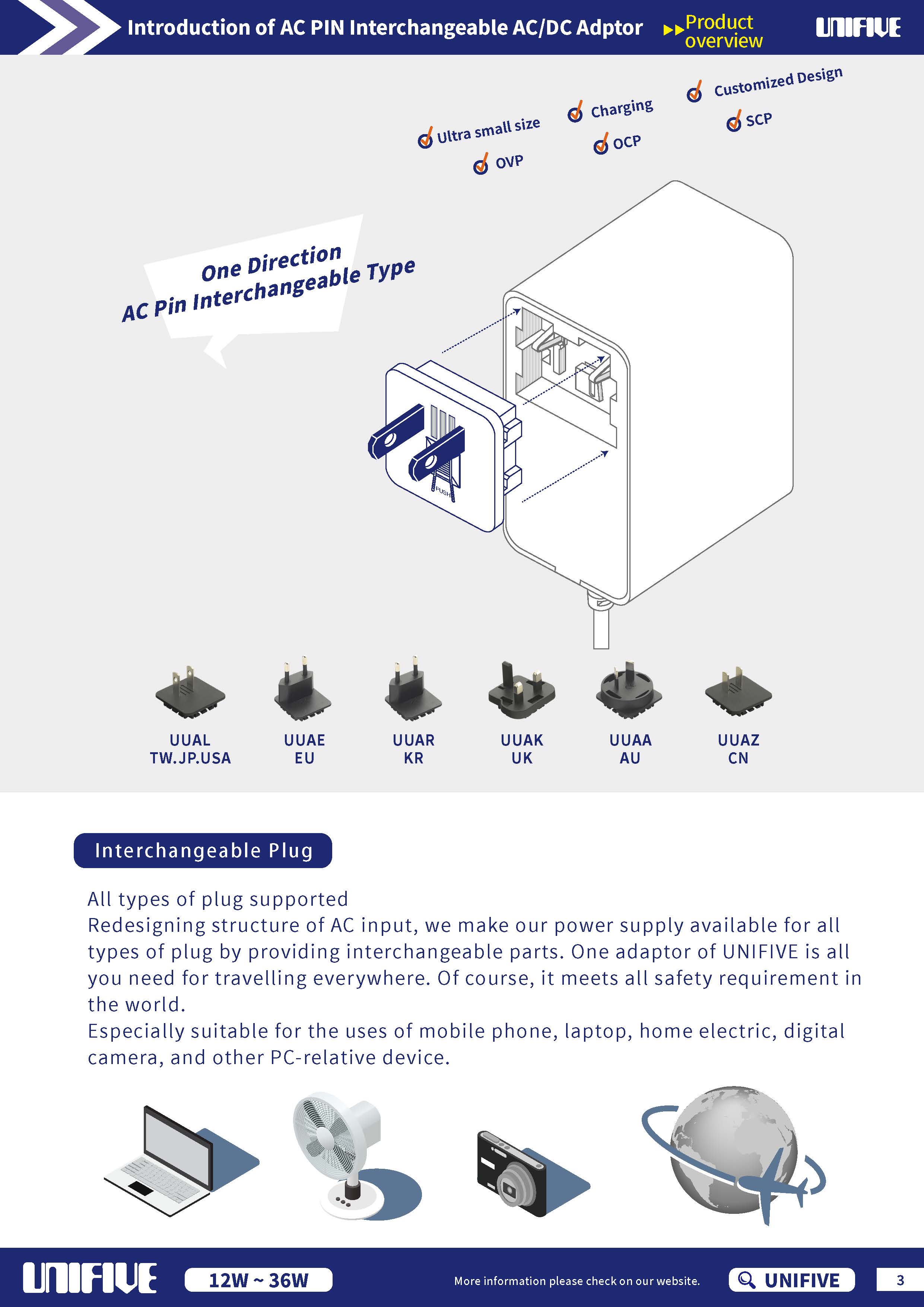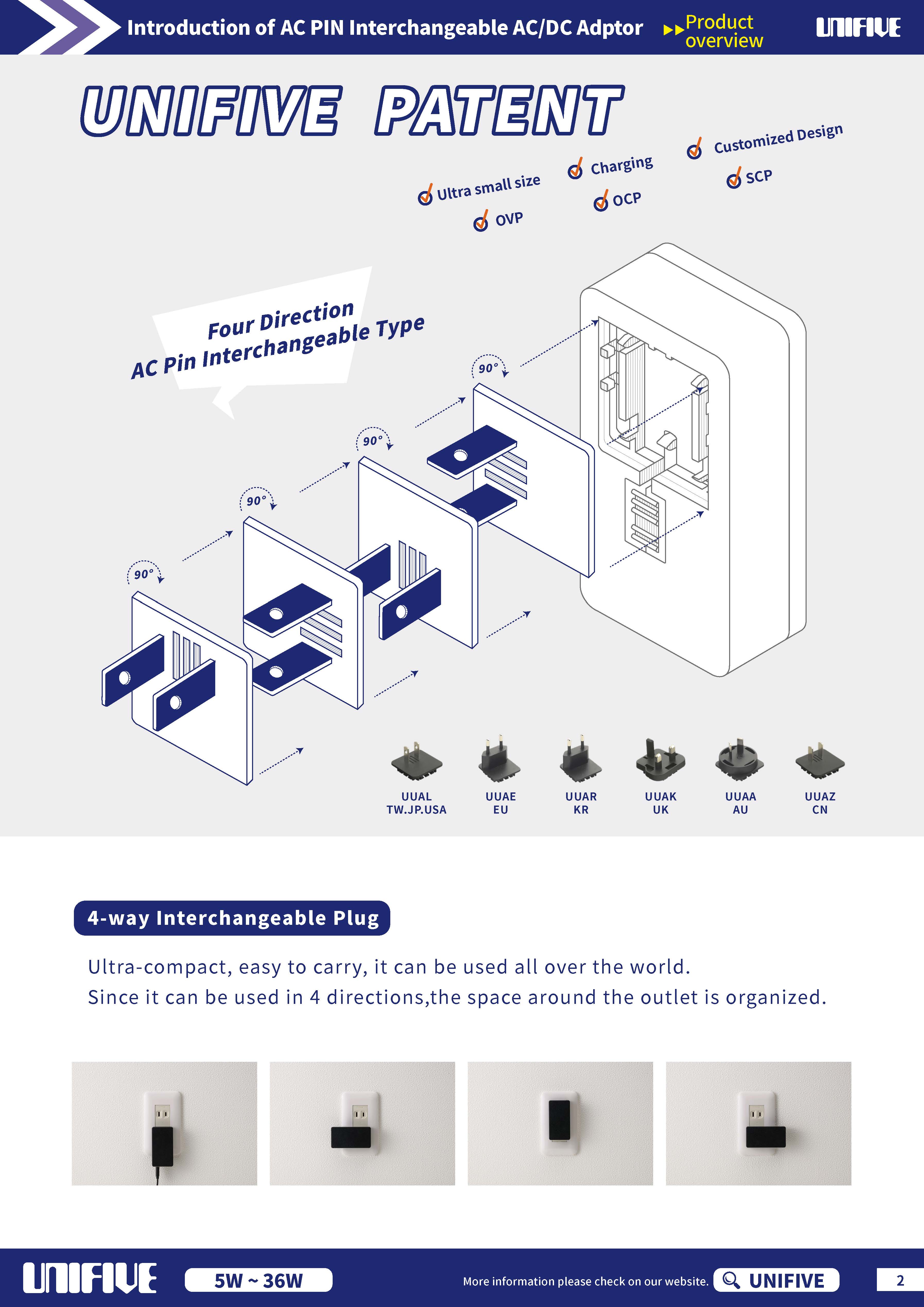 *  Patent for  4 directions AC PIN interchangeable type