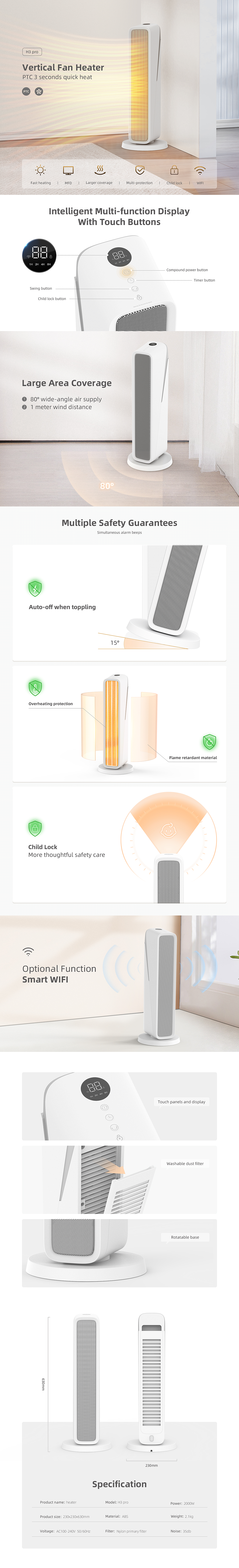 smart Room Bathroom Portable 2000W Electric Ptc Air With Digital Auto Fan Heater