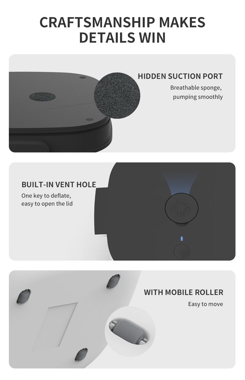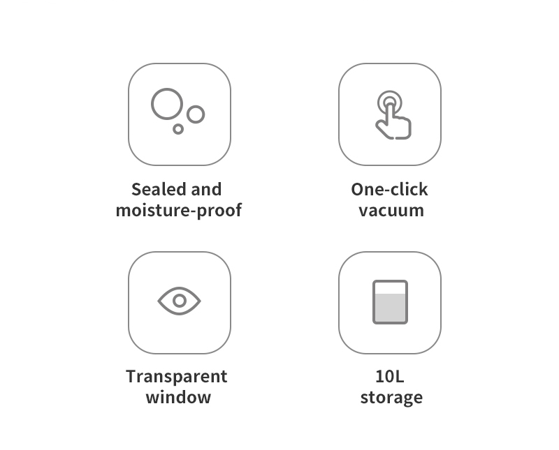 Sustainable, Stocked, Sealed and moisture-proof, One-click vacuum, 360° Silicone sealed, Moisture-proof, One-click vacuum