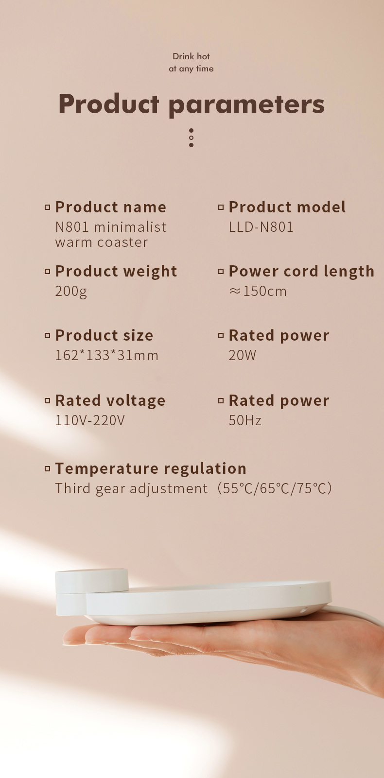 Heating level:55℃-65℃-75℃
