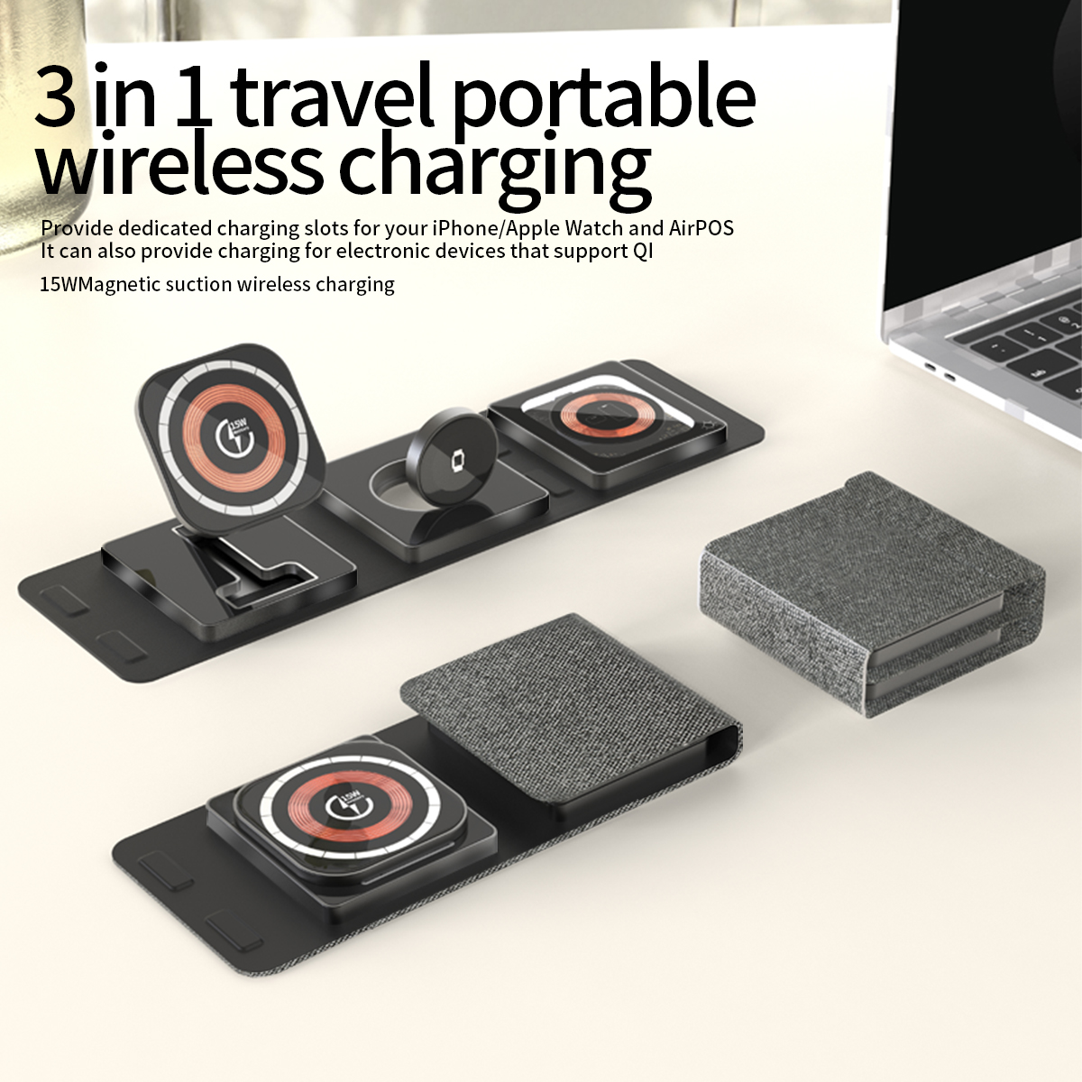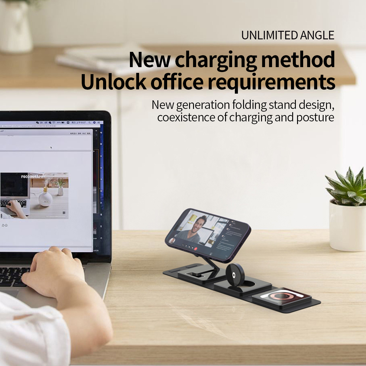 Travel Portable Folding 15W 3 In 1 Wireless Charger Stand With RGB Light | 消费电子产品 | 移动电话,平板计算机和数码配件