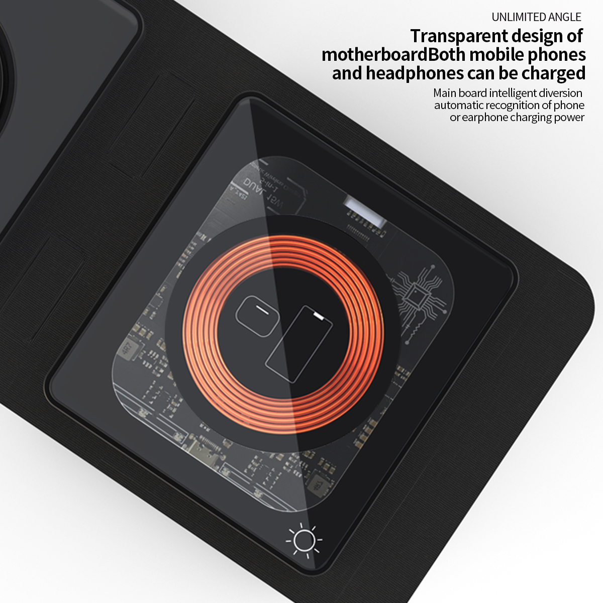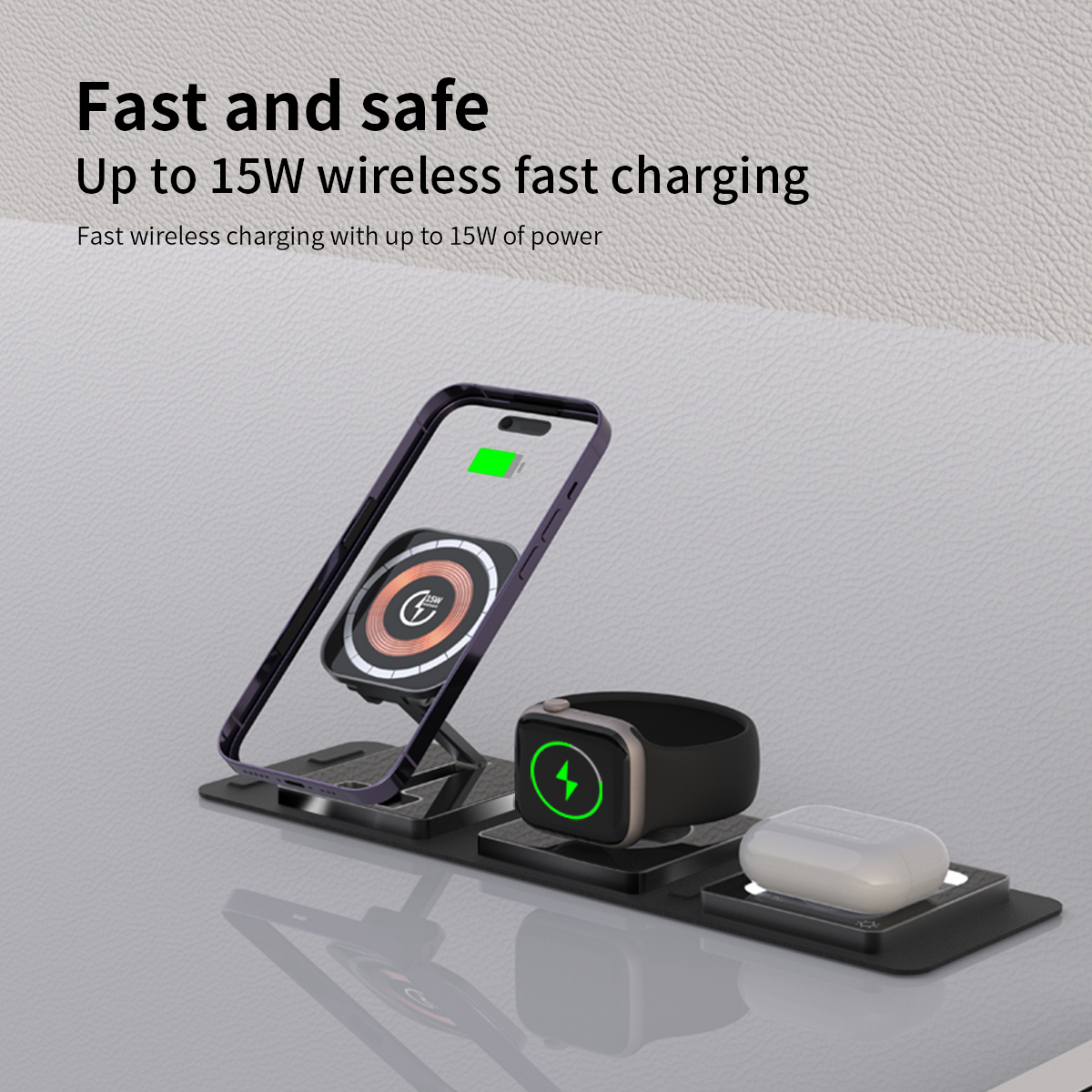 Travel Portable Folding 15W 3 In 1 Wireless Charger Stand With RGB Light