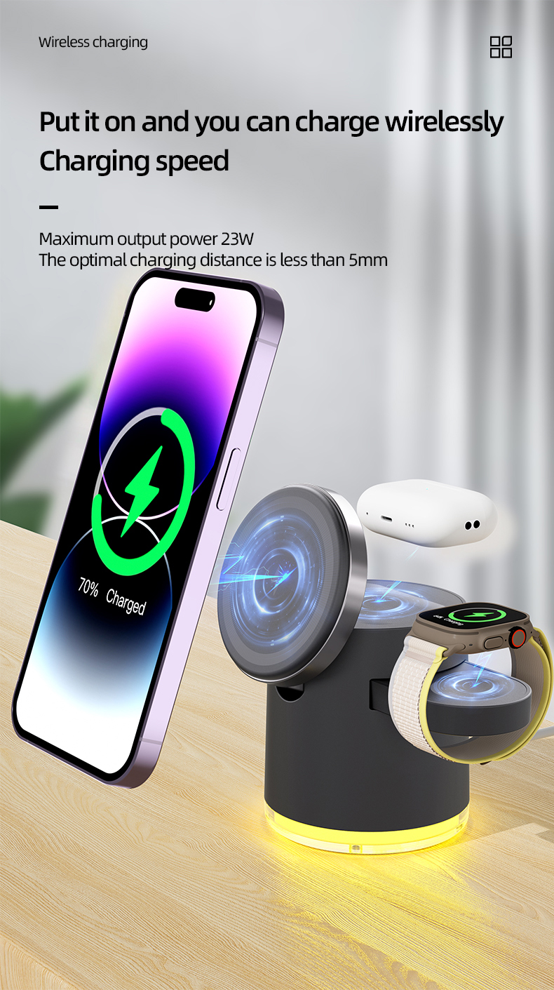 4 In 1 Foldable Cube Shape Charging Stand Magnetic 3-in-1 Wireless Charger