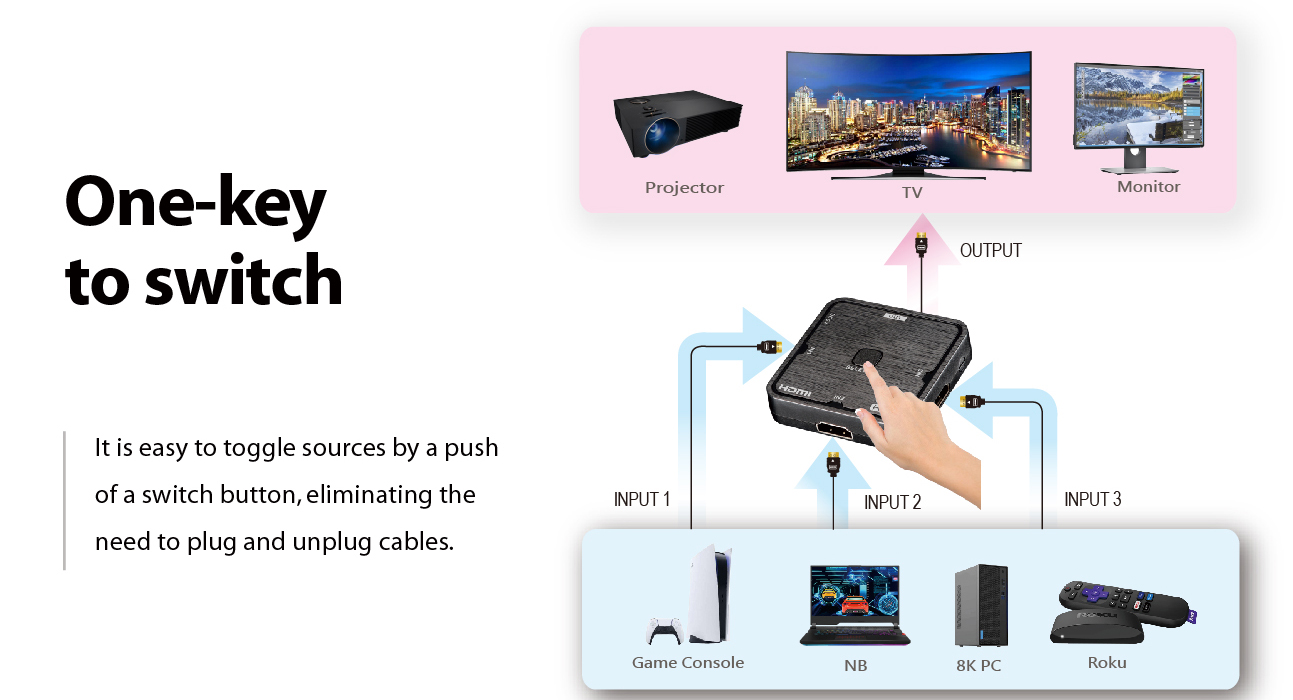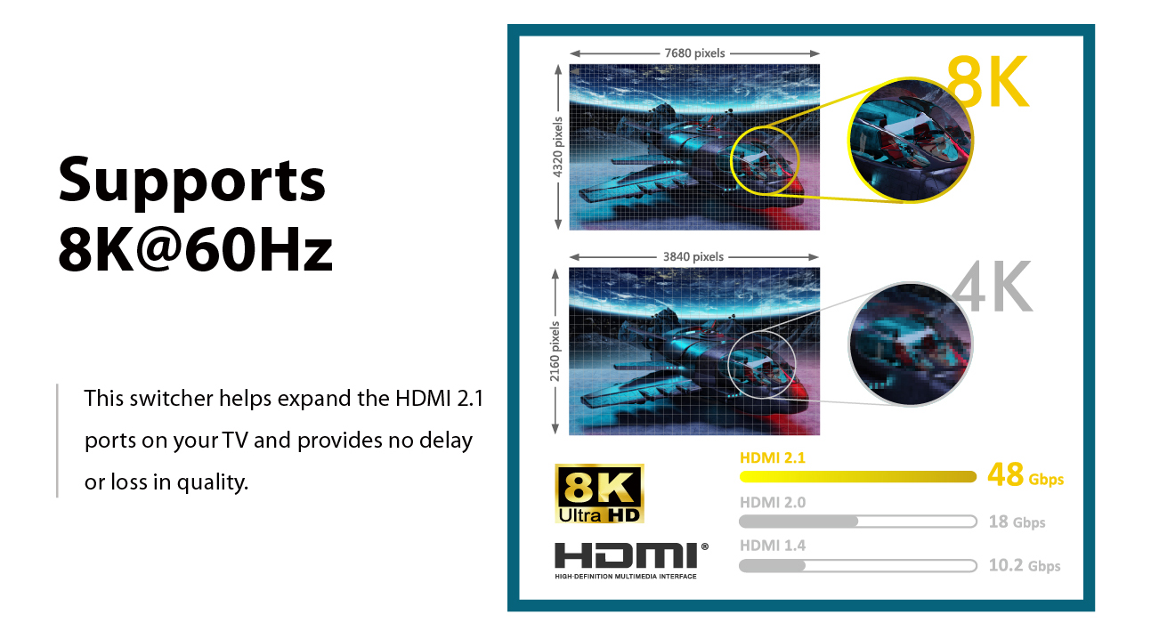 With this HDMI 2.1 (8K) switch, you can have an unprecedentedly enjoyable gaming experience.