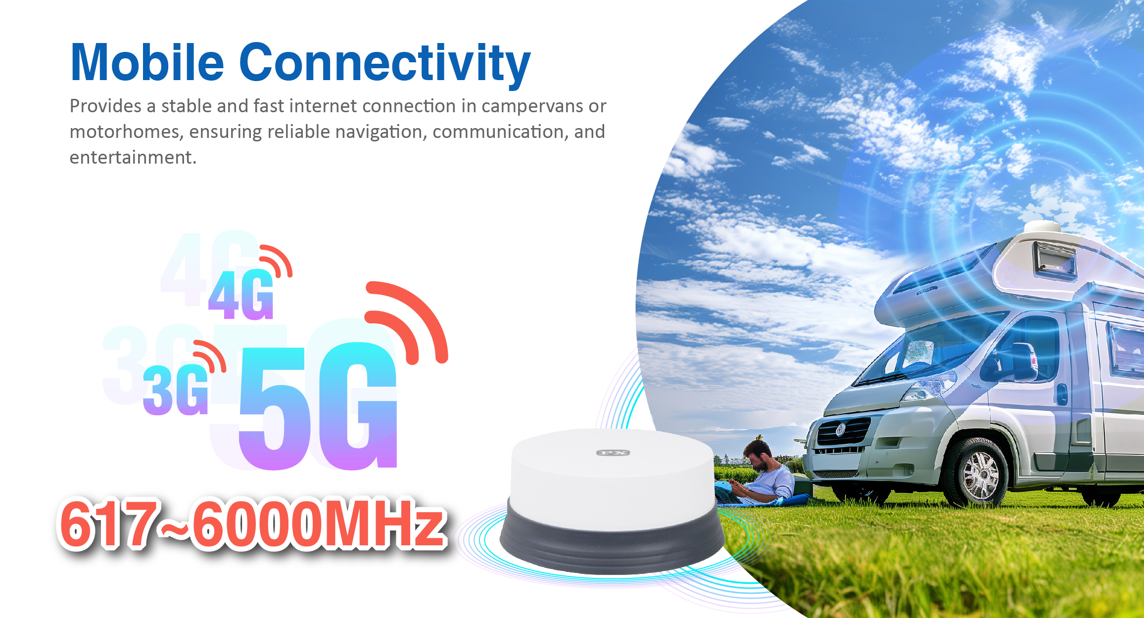 5G mobile car antenna is handy for keeping you connected during your travels in campervans and motorhomes, especially in out-of-the-way places, and meets the digital needs of individuals embracing a more flexible and mobile lifestyle.