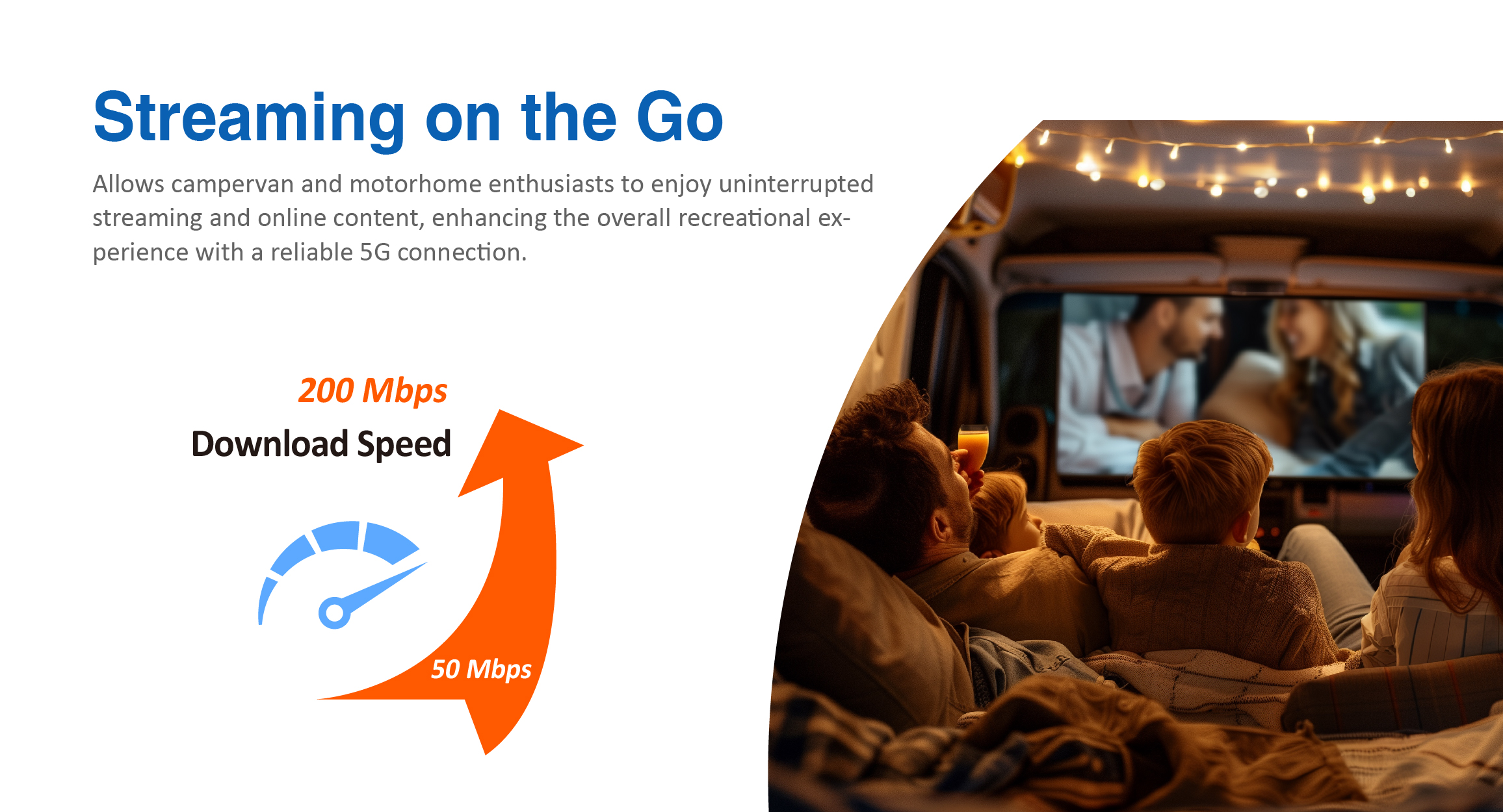 3. Streaming on the Go: Allows campervan and motorhome enthusiasts to enjoy uninterrupted streaming and online content, enhancing the overall recreational experience with a reliable 5G connection.