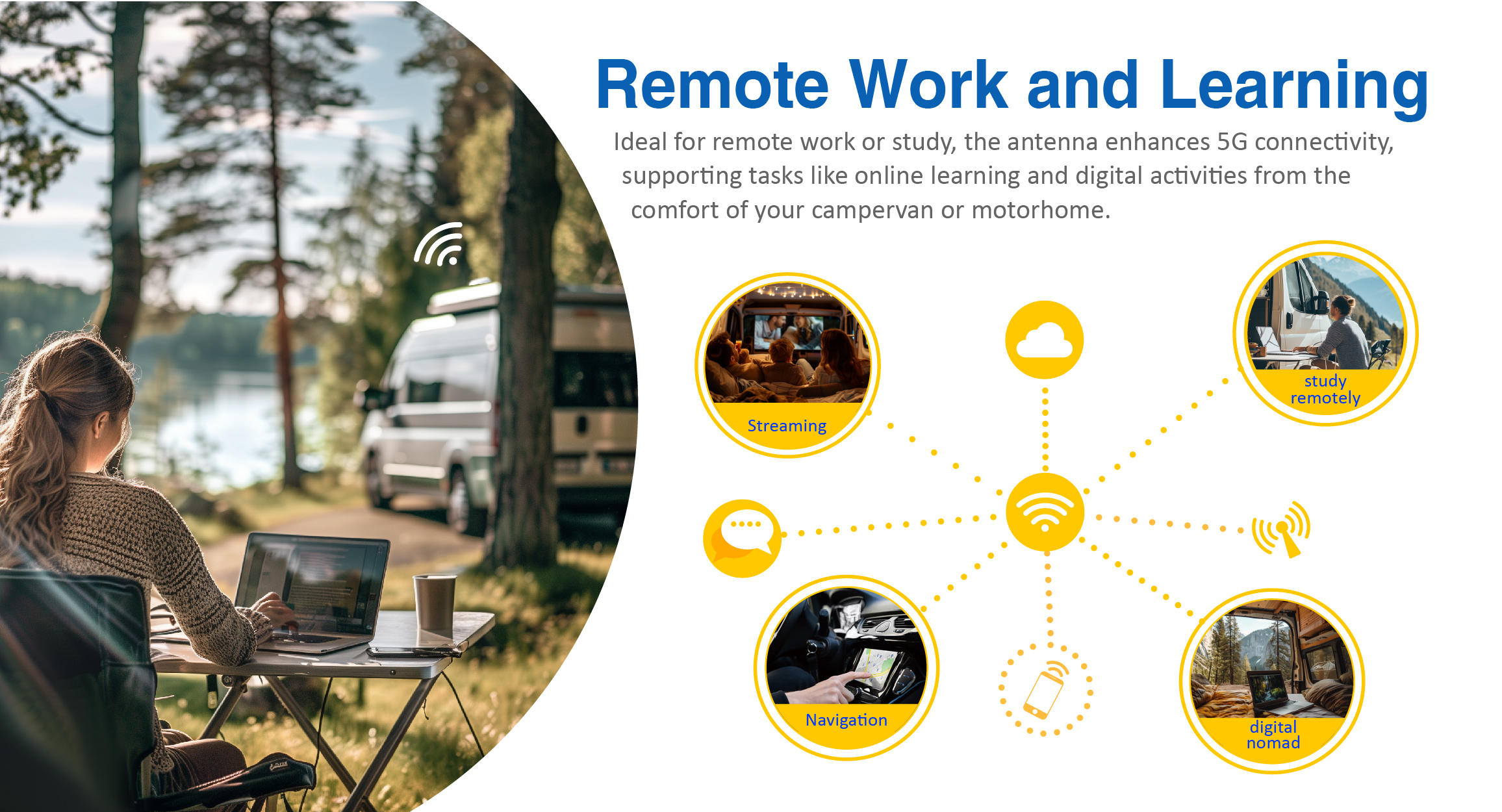 2. Remote Work and Learning: Ideal for remote work or study, the antenna enhances 5G connectivity, supporting tasks like online learning and digital activities from the comfort of your campervan or motorhome.