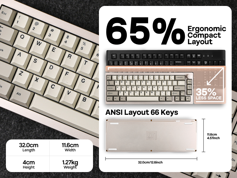 Elevate your gaming and typing experience with the EPOMAKER P65 VIA Wireless Aluminum Gaming Keyboard.