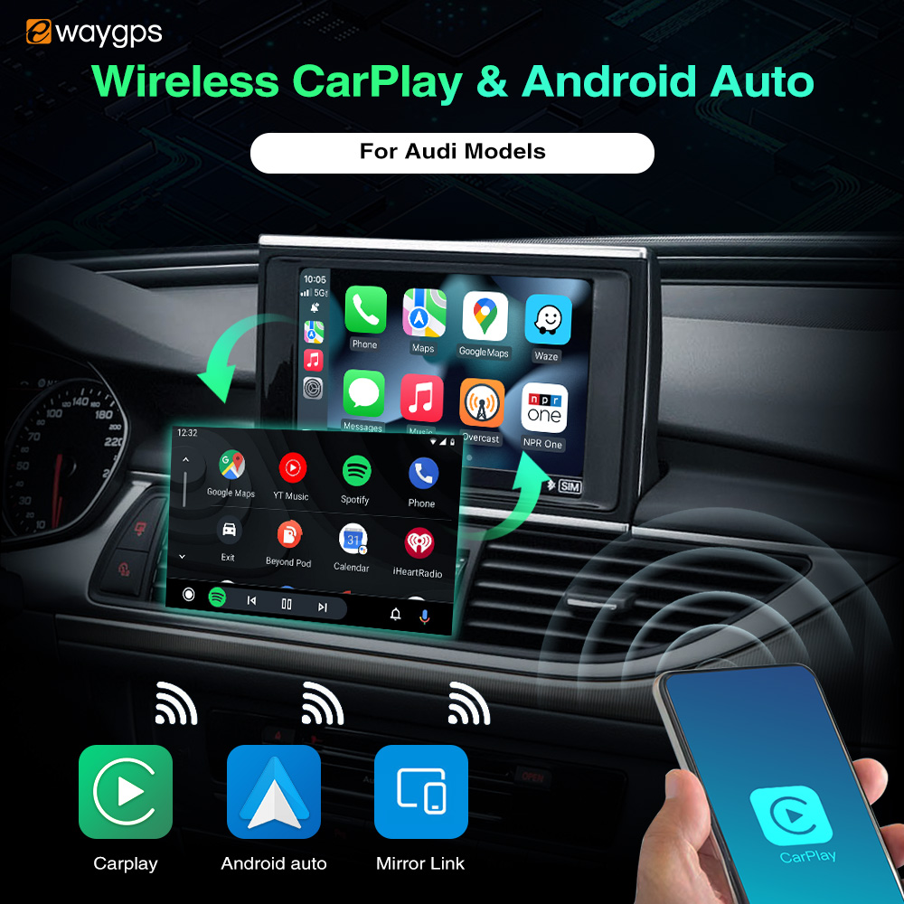 Ewaygps Wireless CarPlay Android Auto Interface Box for Audi Q3 Q5 Q7 A1A3 A4 A5 S7 3G/3G+/MIB MMI/RMC Symphony Concert Retrofit