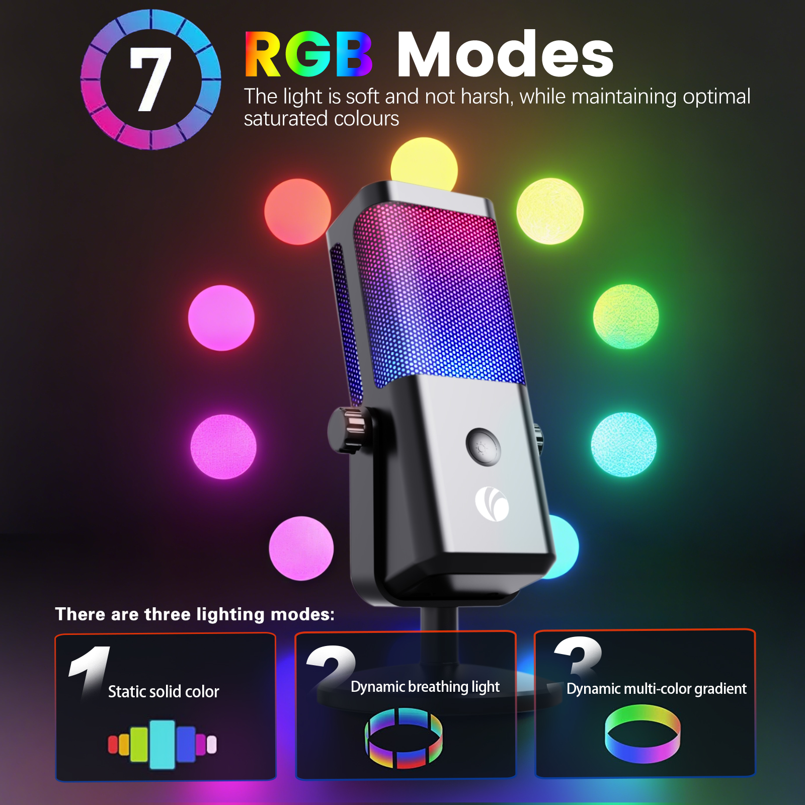 High-fidelity RGB Lighting Wired USB Condenser Microphone